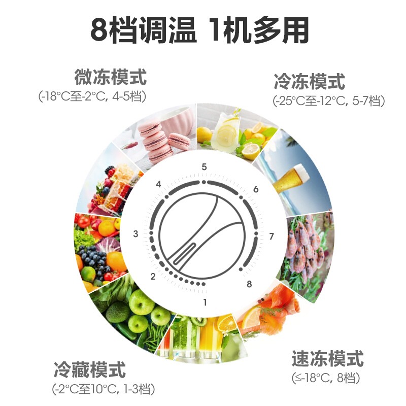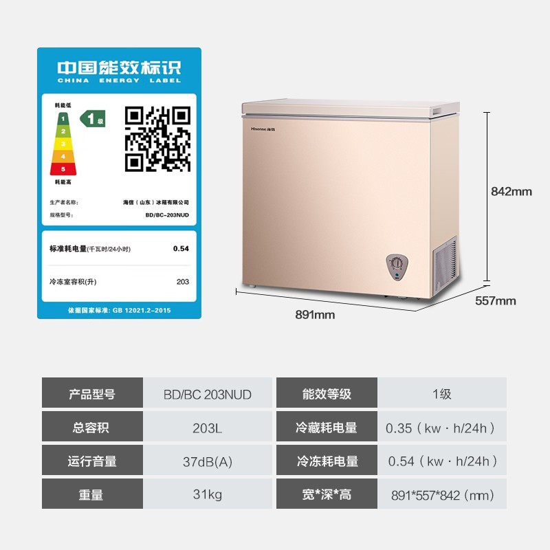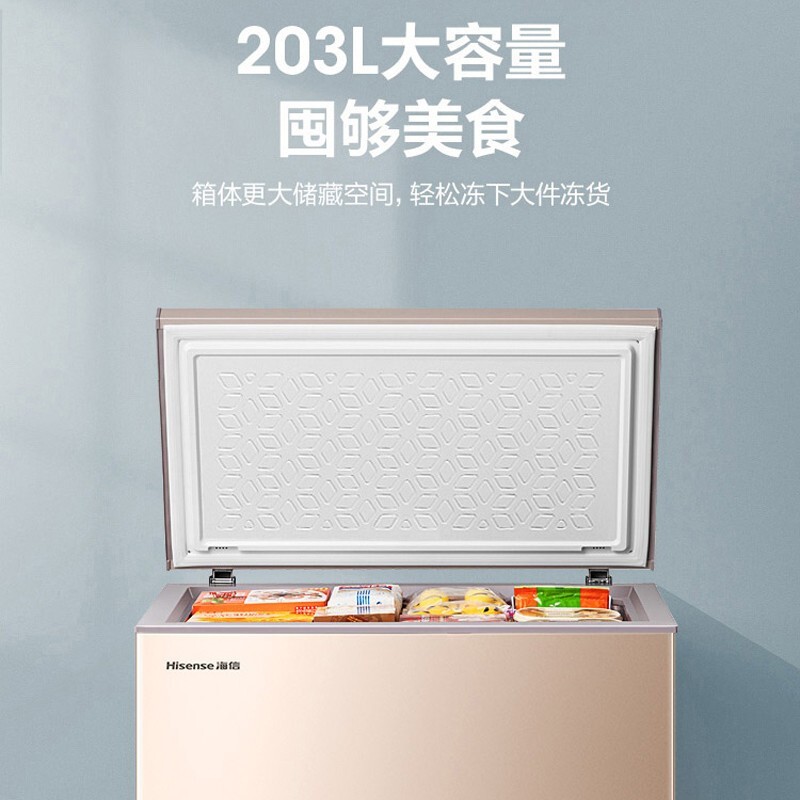 强冷冻力,延时蓄冷,薆金面板 尽显简奢美学,精琢质感,细腻闪耀,百搭各种家装,无界设计 体验整体美感,无界箱壳 由一整体板折弯后连接 成型,美观牢固,无界门体 门盖整块无拼接,一体成型 不易残留灰尘,容易打理,1级能效 更省电更省钱,两天约用1度电,过精细生活,让每一天都充实,203L大容量囤够美食,箱体更大储藏空间,轻松冻下大件冻货。