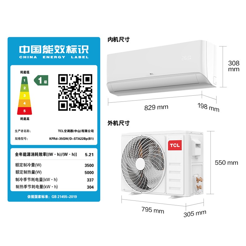 TCL此款型号为KFRd-35GW/D-XH11Bp(A1) 的壁挂式空调,郁金香系列,纯白机身,高颜值侧面造型。具备快速制冷热,双层导风板,舒适送风,钛金高温双蒸自洁;风冷散热技术,高温也可制冷;采用变频压缩机,制冷量3500w,制热量5000w,制冷功率855w,制热功率1390w,电辅热1000w,循环风量600m3/h,能效比4.65。LED隐藏式显示,精密滤网,WiFi控制,广角送风。