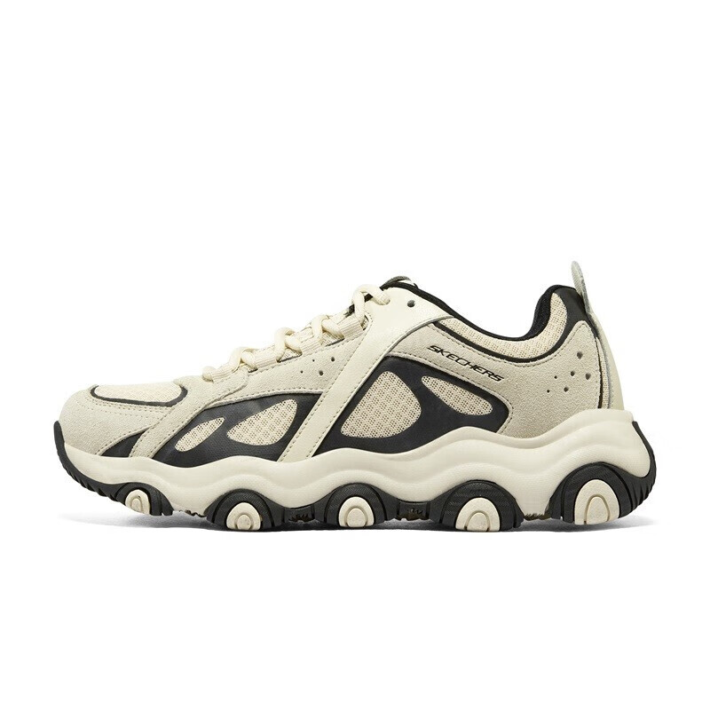 经典D'LITES熊猫鞋款复古升级,设计更加简洁易搭,鞋身嵌入闪电线条流畅醒目,BLITZ闪电熊猫鞋,时尚前卫酷飒有型。皮革与网布层次拼接质感丰富,延续D'LITES系列精髓,复古潮流焕然一新。老爹鞋厚底设计轻松显高,侧底水波纹立体动感,块状点缀呼应鞋面,别具未来酷感。
