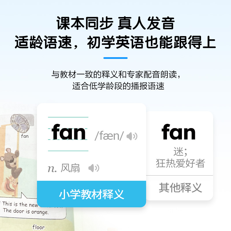 适龄人体工学设计,小手型轻松握持,不费力。0.3秒快速识别,识别准确率99%,内置1.5WAAC高保真线性喇叭,饱满有力,音色自然,音质清晰。采用1+16G存储组合,可保存海量资源。语音随心说就能识别、翻译和播报,学好口语表达。