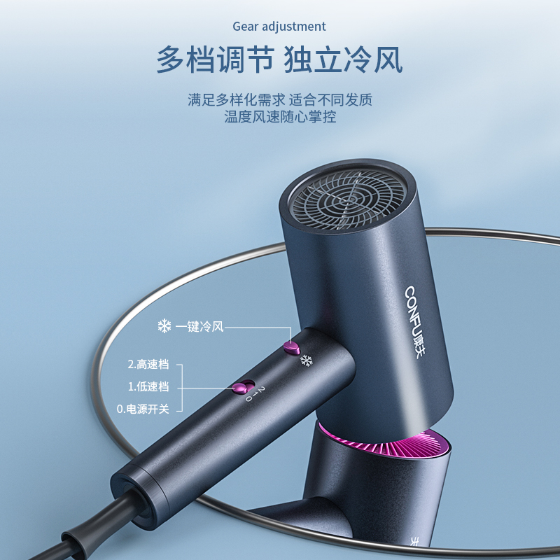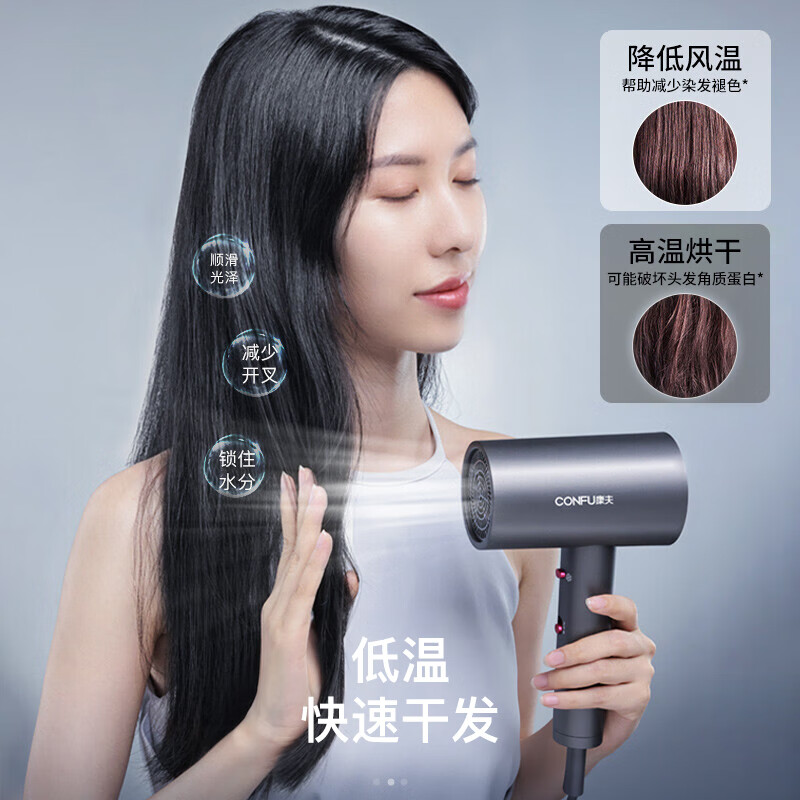 康夫这款型号为KF-3143 升级款大功率电吹风,时尚简约,心动颜值之选,速干护发,升级降噪,1800W大功率,强劲动力,极简美学设计,配上你的高颜值。聚风增压集风嘴,360°旋转,无死角速干定型,可拆卸设计,轻松完成美丽发型。