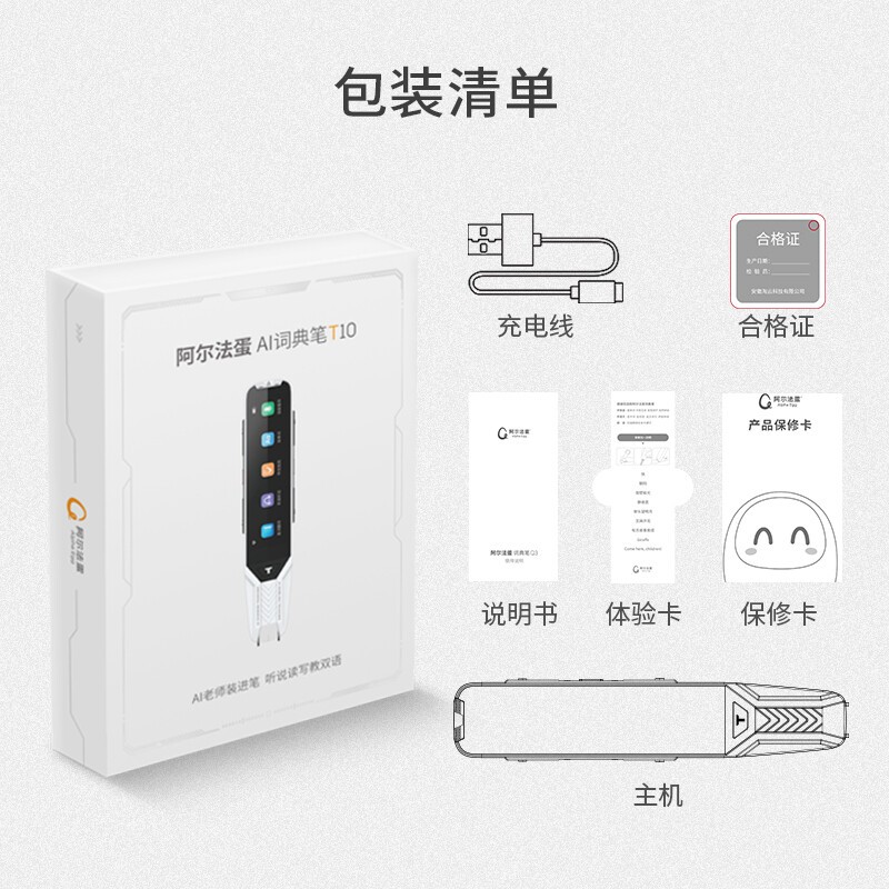 全新发售的阿尔法蛋 AI词典笔 T10 最大的亮点是首次在词典笔中引入AI老师功能,目的是及时高效的解决学生课前预习、课后复习以及日常阅读、备考、预习时遇到的困难,让词典笔不再是简单的“扫描-查找”工具,而是一支可以主动帮助学生提升学习效率、提高学习兴趣的智能词典笔。