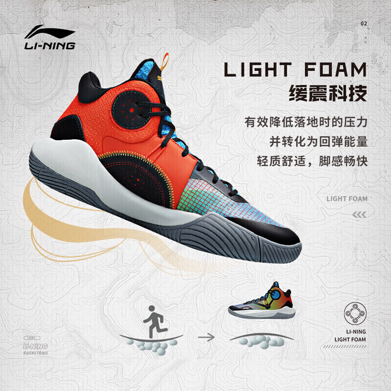 延续LIGHT FOAM缓震技术的轻与弹,作为音速系列的代名词,赛场上闪转挪腾,突击与无形。TPU外底延伸至脚踝两侧,稳定足踝及脚踝侧墙前部外包TPU,提供良好的侧向支撑性能,凌驾于赛场之上。