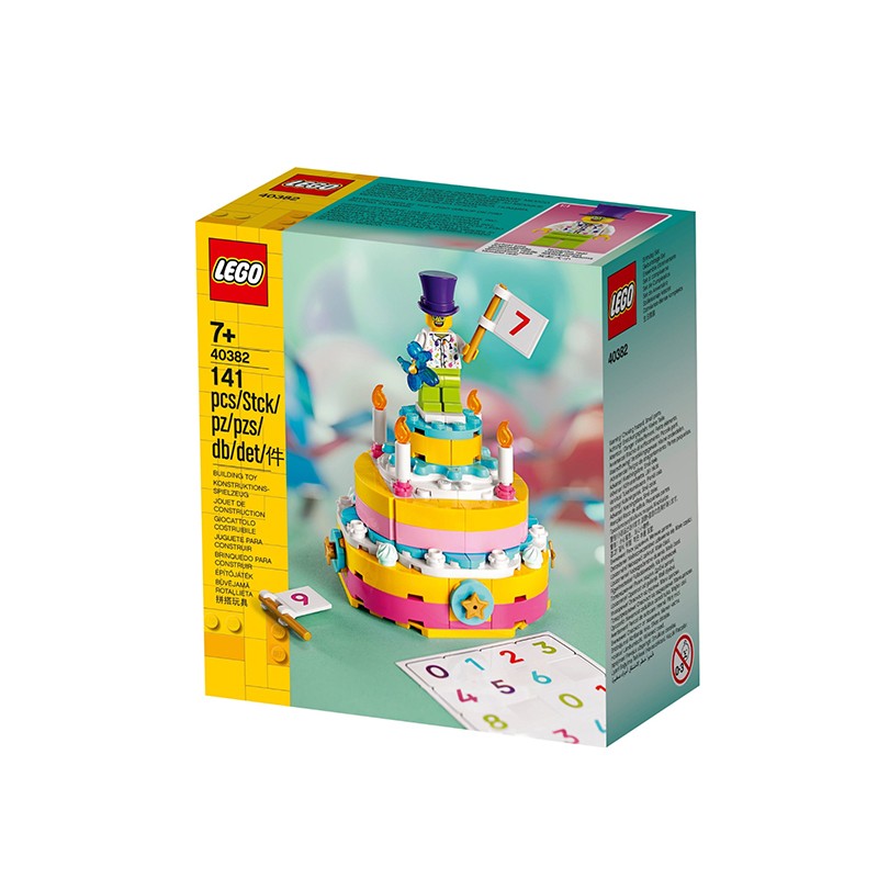 使用这款乐高® Iconic 生日套装 (40382) 来祝福您的乐高®粉丝生日快乐。这款色彩绚丽的拼搭玩具包含一个积木拼搭的蛋糕,其顶层可以旋转,还包括一些装饰,如可拼搭的蜡烛和动物气球。还有一个头戴礼帽的小人仔,他站在蛋糕顶部,手握带有小寿星年龄的旗子(年龄数字来自贴纸页)。本套装既适于单人拼搭,也可以多人玩乐,是庆祝特殊日子的一种有趣方式。