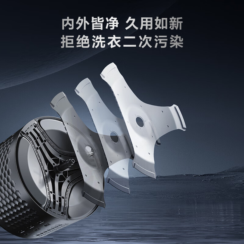 TCL Q10系列 G100Q10-HDI 洗烘一体机,搭载DD直驱变频电机,相比传统皮带传统动力响应更迅速,控制精度更高,同时更加静音省电。采用525mm超大内筒筒径,衣物伸展空间更大,摔打力度更强,同时冲刷水流更快,更容易冲走内外筒间的污垢。内外筒首创免污水封舱设计,外筒为光滑平底内筒三脚架经过三层密封,达到IPX8级别防水,减少了生锈和藏污纳垢。内置离子柔护技术,为高档衣物提供无水护理,高效除菌除味,配合UVC除菌,水洗过程中也能深度杀菌。