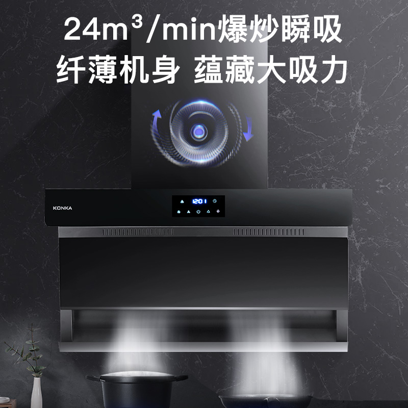 当前的位置: 首页 > 今日值得买 > 康佳(KONKA)顶侧双吸油烟机 7字型抽油烟机 90°家用24立方爆炒大吸力烟机 自清洗挥手控制 CXW-268-KL88