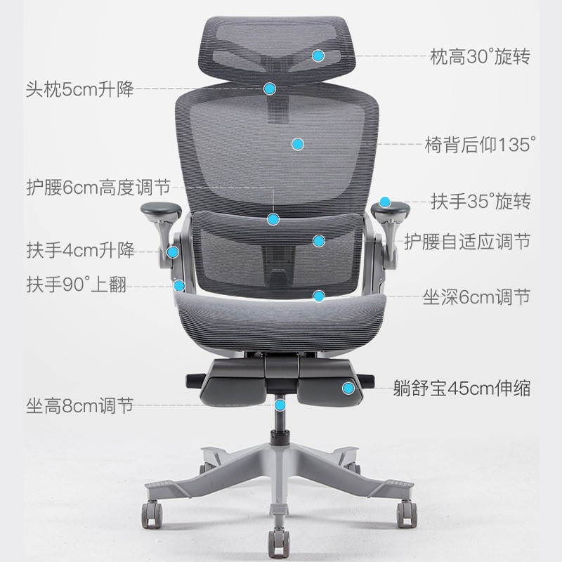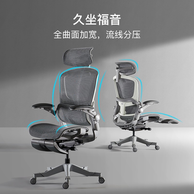 此款电脑椅采用护腰3.0,外挂式动态悬浮腰枕,自由跟随腰部前后左右浮动调整,主动提供动态包裹支撑,多种坐姿时刻贴合护腰大曲面更贴合身体曲线,当座椅受压时,椅面变化支撑角度,将身体压力快速扩散至到全椅面,获得更解压支撑