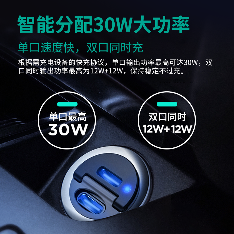 LED灯光提醒,更贴心更加人性化设计、翻盖式车充口;