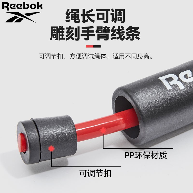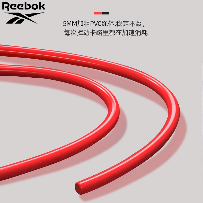 Reebok 锐步 训练健身跳绳 RARP-12011,5MM加粗PVC绳体,稳定不飘,结实耐磨不打结,绳长随心调节。防滑镂空手柄,采用空气动力学设计,提供更有效的摩擦力,同时让气流进入手掌,减少刺激。