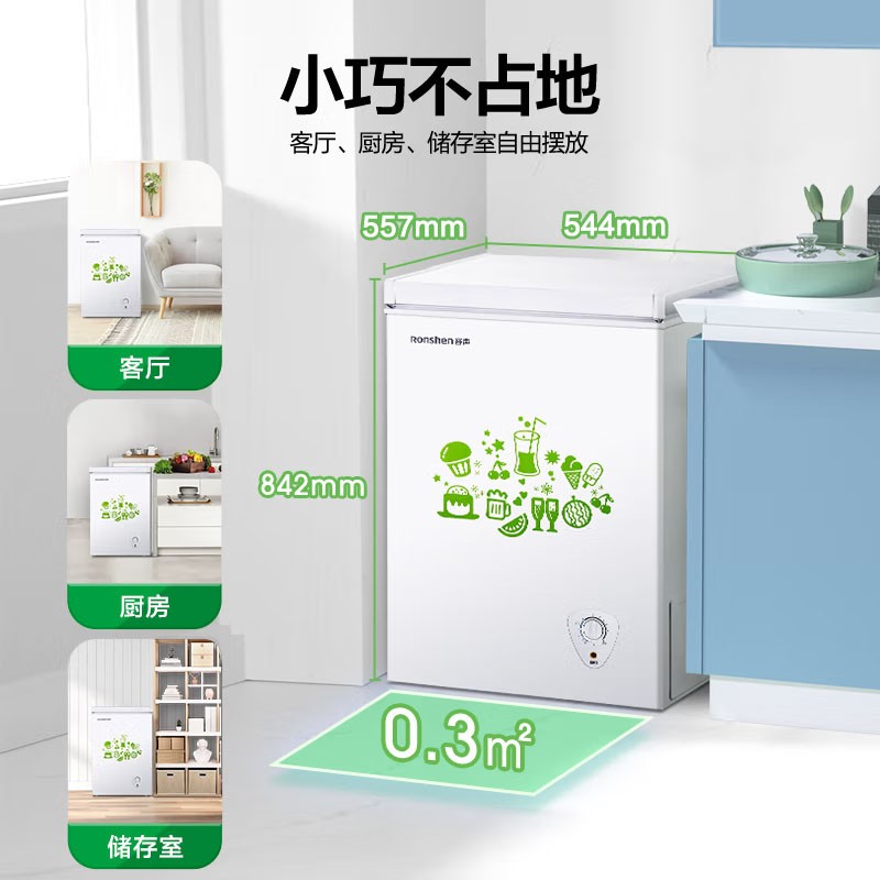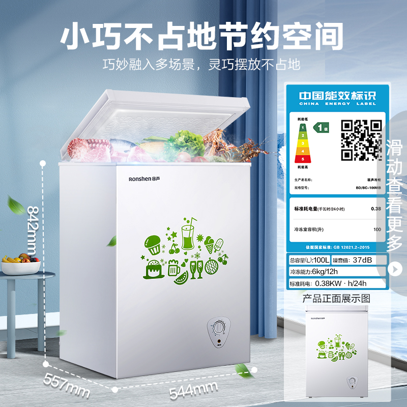 容声的这款家用小冷柜,小巧的身材却拥有100升的超大容量,可以轻松满足全家人的饮食需求。一级能效系统,省电又环保。冷藏冷冻可随意转换,适用于客厅、厨房等。