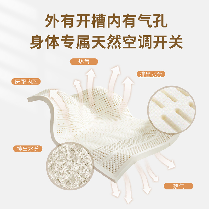本款京造森呼吸系列原产进口乳胶床垫配备三种厚度,不同厚度,不同的舒适体验,7.5cm既可作为榻榻米,也可搭配床垫使用,3/5cm则根据求轻松搭配床垫,产品采用禄普一体成型工艺,0合成胶0滑石粉添加,让您体验天然高纯度的享受,此款采用人体工学七区释压设计,结合70D黄金密度,自然承托更贴心增加分区按摩颗粒,整晚伴您安睡,床垫采用双面冲孔设计,上下床面均匀分布透气孔槽,乳胶内部亦分布上亿个蜂窝式气孔,两者配合,形成“天然的空调系统”可及时散出睡眠中的余热和潮气,透气舒爽,不惧闷热,天然乳胶的高回弹性可以吸收人在睡眠时产生的震动和噪音,无需担心翻身吵醒伴侣,自在同床,静音享睡。