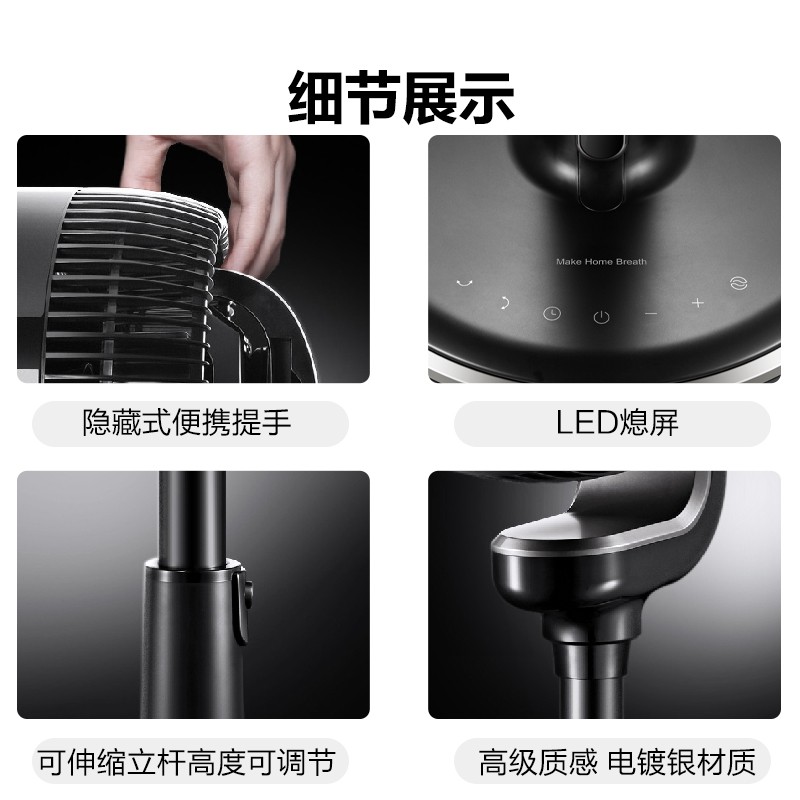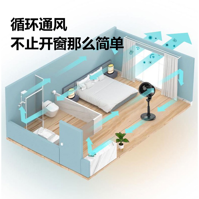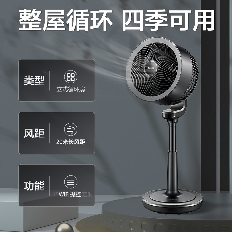 艾美特空气循环扇,32档强劲气流, 能有效提升室内空气交换速率,加快房间通风换气:20平米房间空气循环1次 只需2分钟 大倾角螺旋扇叶,参考潜艇螺旋桨叶片设计, 定向风导流罩、空气动力学网罩、让强劲螺旋风整流聚合到正前方, 风距更远更集中,加速封闭的空间空气循环流通。APP智能操控。