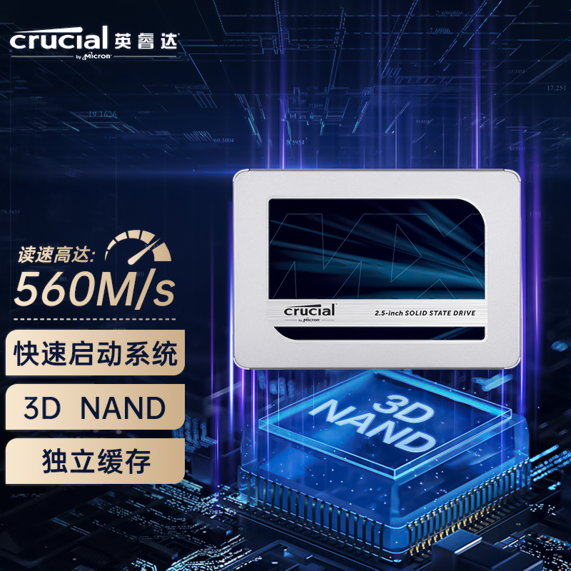 MX500系列SATA 2.5英寸版提供250GB、500GB、1TB和2TB四种规格,它采用第二代Micron 3D NAND技术,选用64层堆叠3D TLC颗粒,通过CMOS Under the Array/CUA架构将空间尽可能压缩,让单颗粒容量更大。可提供560MB/s读取和510MB/s写入,4K随机读写分别为95K IOPS和 90K IOPS,它还拥有高级功能与防护,包括动态写入加速、 AES 256位硬件加密、断电数据保护、数据防御、独立 NAND 纠错阵列、过热保护等。为解决用户数据转移和系统安装问题,MX500附赠了Crucial Storage Executive程序,支持监控,优化和一键系统转移等。