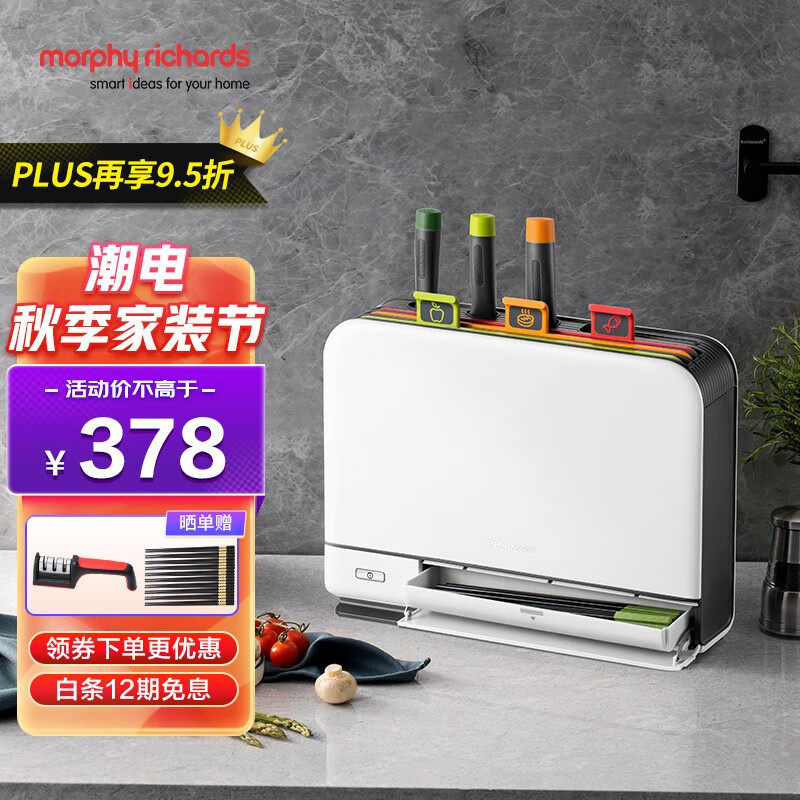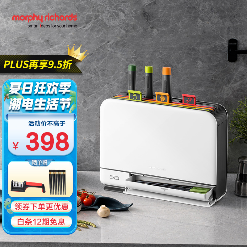 摩飞(Morphy Richards)这款型号为mr1001的刀具砧板消毒机,消毒进阶,双重杀菌,灭杀率达99.9%。热风烘干,专用刀板,标配自带三板三刀,可收纳三板四刀十筷,麦秸秆砧板耐滑不起屑。插电使用告别繁琐充电。生熟将康分类,整机收纳,内置筷筒。