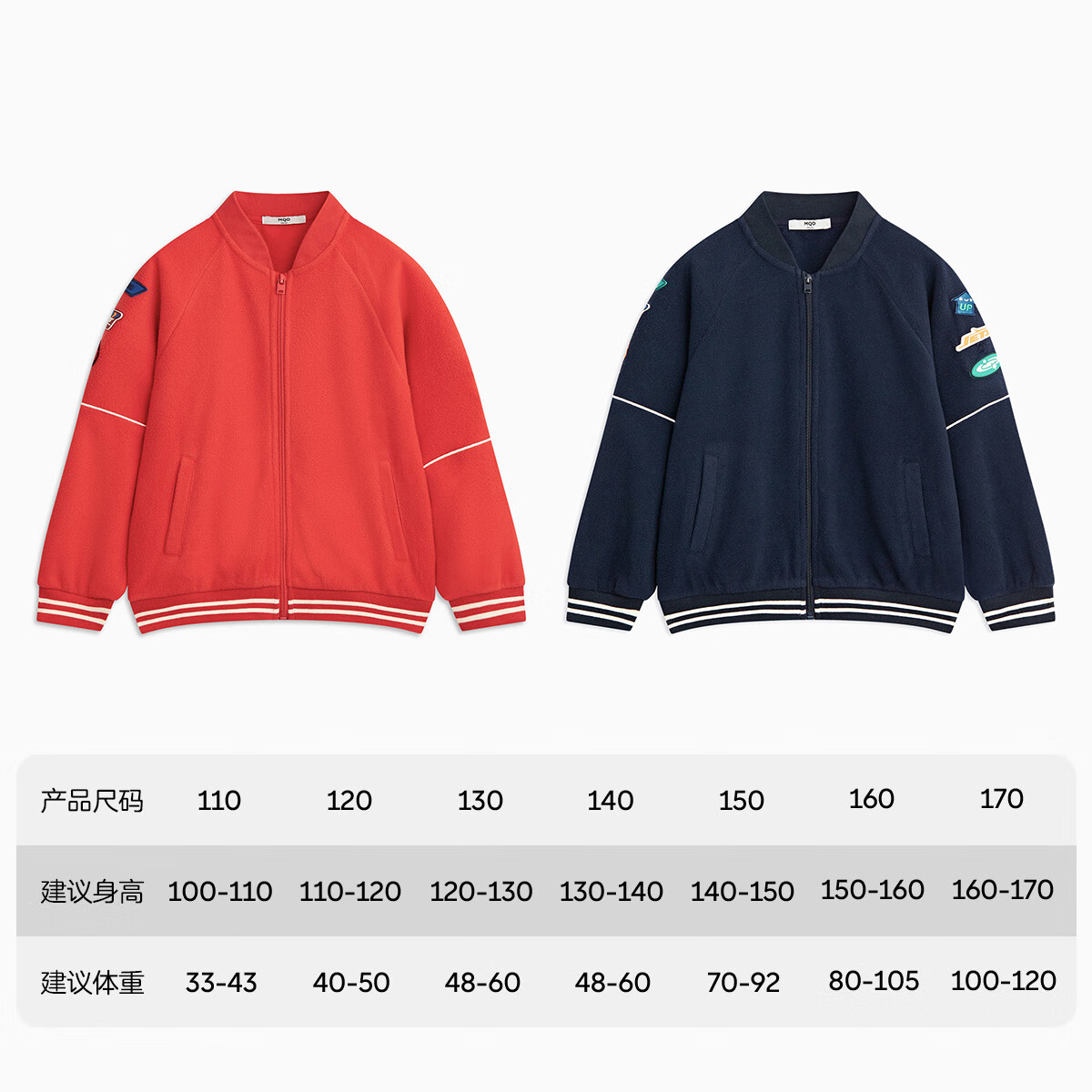 MQD 马骑顿 儿童摇粒绒外套 ,精选摇粒绒面料,柔软保暖。 立领棒球服版型,防风保暖, 潮酷百搭。两款两色可选~