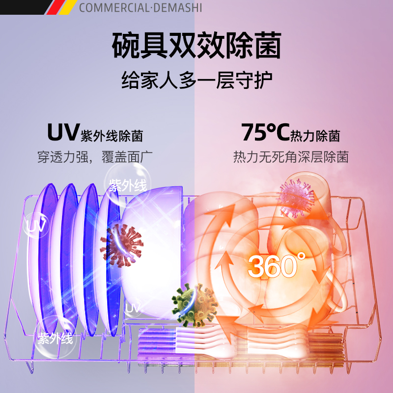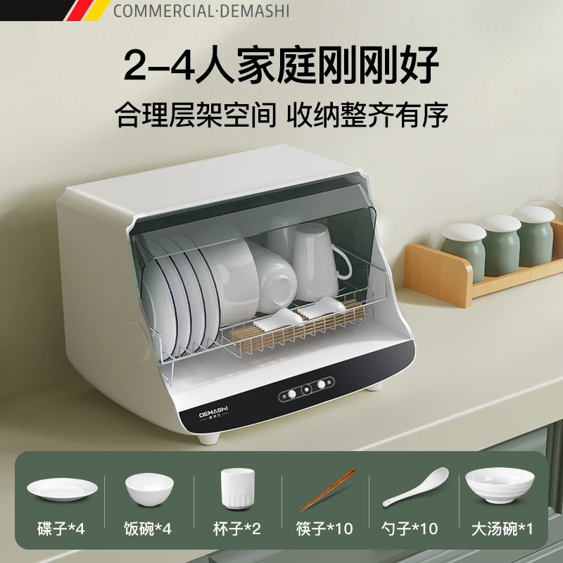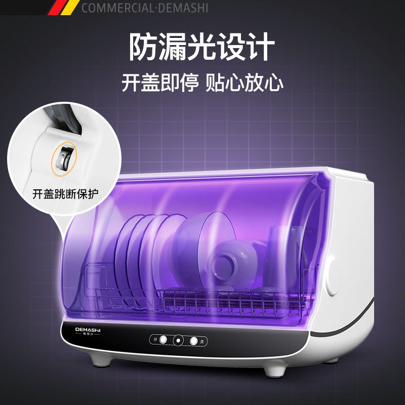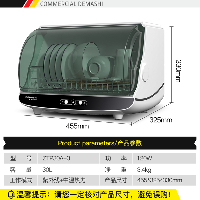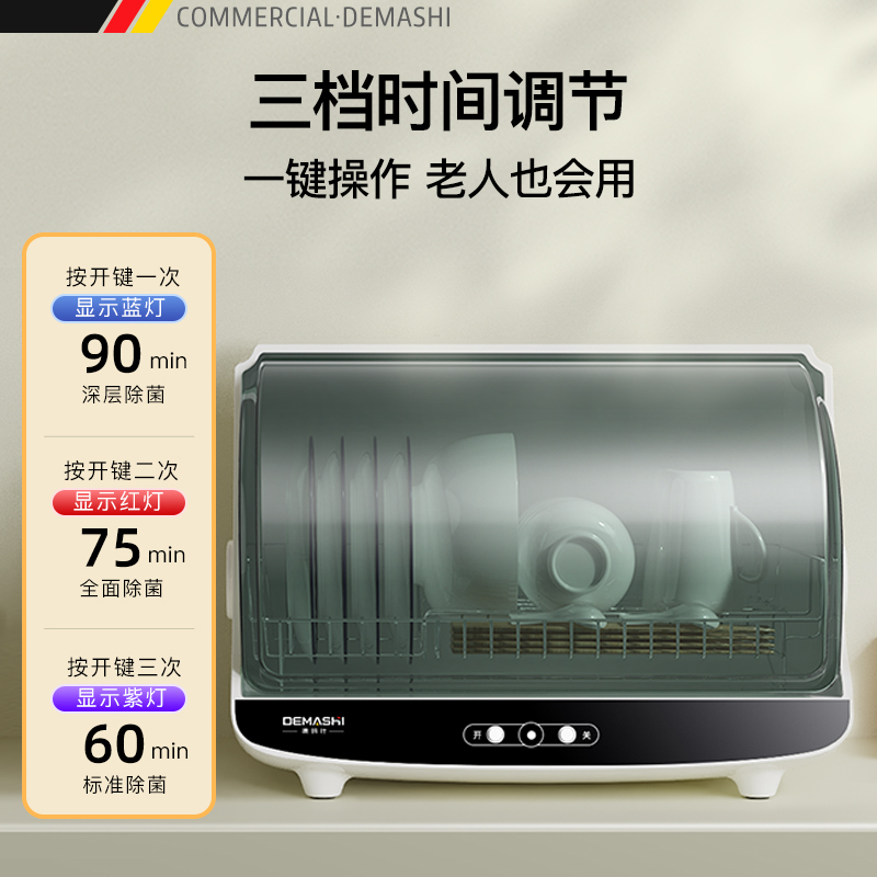 这款台上式消毒柜具备杀菌、烘干、沥水和收纳凳功能,紫外线+85°C热力杀菌,快速烘干。设计上采用整体层架,方便快速沥干水分,设计小巧灵活,455*325*330mm的尺寸不占台面太多空间,内部可放最大20CM以内的汤碗。