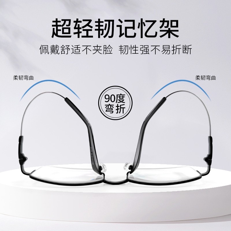 超轻记忆钛架弹力大,不易折弯不易变形不压鼻,大脸不夹小脸不掉,适合各种脸型。细节处尽显高档品质,超薄低反射的日本进口1.67防蓝光镜片具有防蓝光辐射、防紫外线、高清耐磨、防水防尘易清洁功能,让高度数的您也可以享受超薄镜片带来的轻盈感。从此告别厚重镜片。佩戴更舒适,度数更精准。