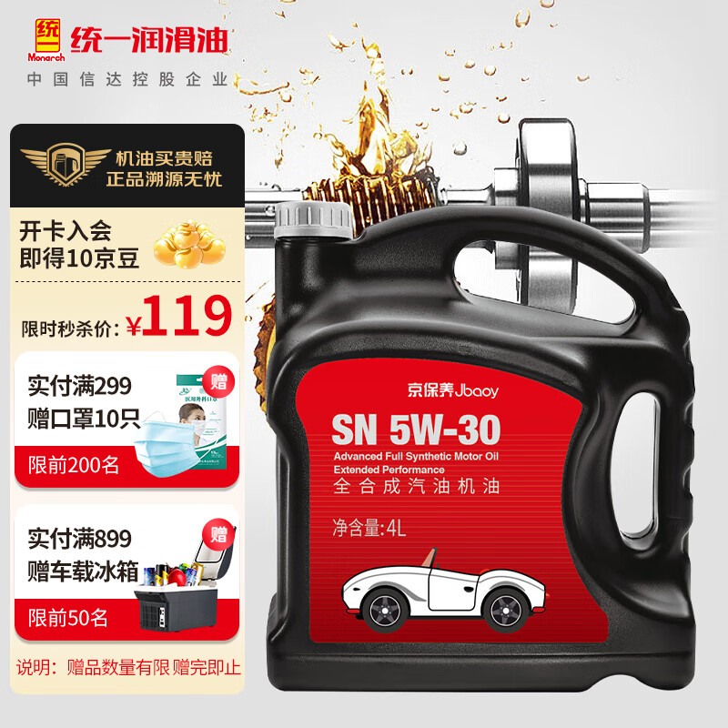 统一润滑油是由壳牌统一(北京)石油化工有限公司是由壳牌控股的公司。本款机油为全合成配方,SN级别,5W-30型号,通过了美国石油协会API、克莱斯勒、通用、福特、大发、现代、起亚、五十铃、马自达、三菱、日产、铃木、丰田、本田等机构和品牌认证,适用于市面上大多数主流家用轿车或SUV选用。