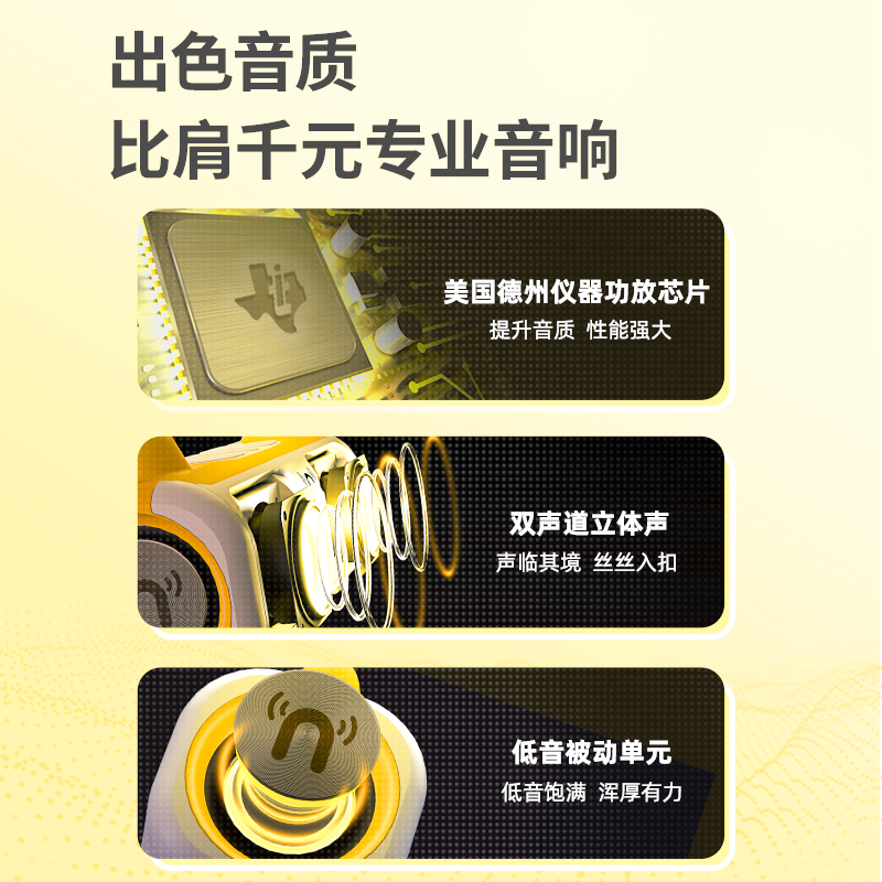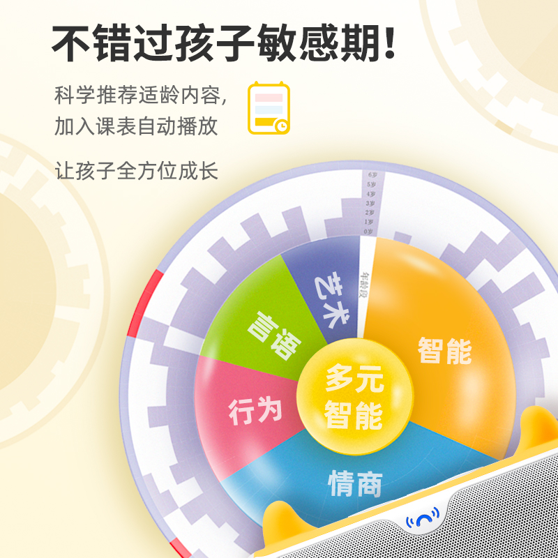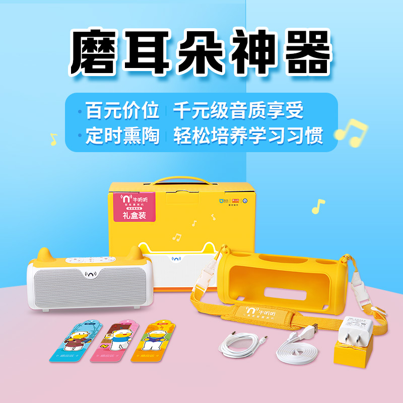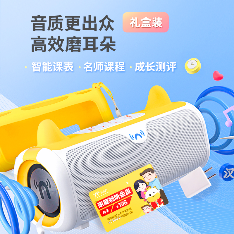 牛听听推出的这款儿童早教故事机,搭载美国德州仪器功放芯片和低音被动单元,低音饱满,浑厚有力,高度还原乐器和人声。内含英语启蒙、音乐、古诗等多样课程,支持通过手机APP根据孩子作息进行排课,到点自动播放。