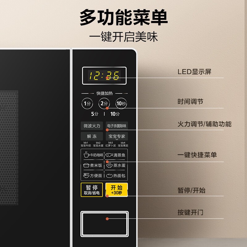 美的M1-L213C微波炉,拥有传统的转盘加热技术。使微波更均匀的穿透食物。多角度反射内胆,使热量别易流失,有效缩短烹饪时间。触控面板可选择多种烹饪方式,简单直接。自带防水防设计以及自动除味功能。