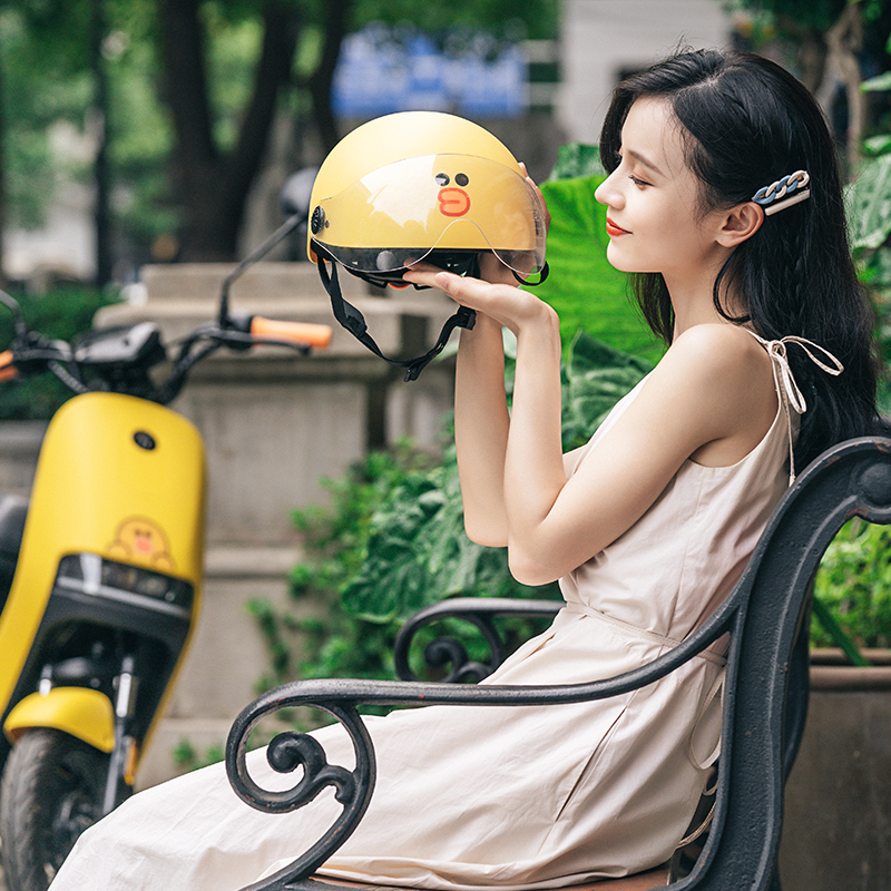 Ninebot 九号 LINE FRIENDS合作款 电动车头盔,头盔外壳采用ABS材质,内壳采用EPS材质,质量轻,而且易吸收和扩散冲击波,通过严苛的3C质量认证,对头部的防护性更强,更能抵抗外部的冲击力。