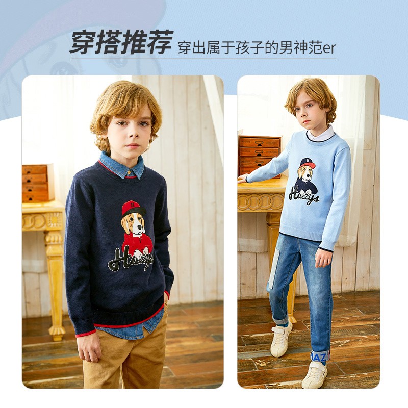 HAZZYS 哈吉斯 儿童针织线衣,舒适面料,精梳棉纤维亲肤舒适,比普通棉更软糯纤长,细腻光滑不易起球。罗纹领口舒适穿搭,有型帅气,罗纹袖口包裹手腕防风也保暖。