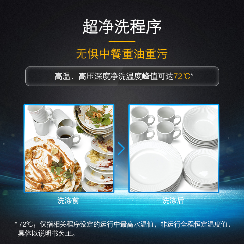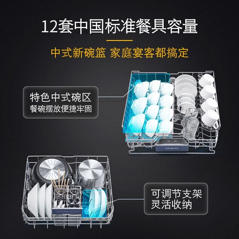 西门子在2018陆陆续续更新了全国产化的洗碗机,SJ636X系列是首款全嵌入式安装的型号,具体型号的差异在洗涤程序和销售渠道不同。洗涤容量达到了12套,全嵌入式安装设计。安装高度从原先的815、805降至775mm,更利于国内橱柜的实际安装情况。内部碗篮特设计有中式碗区,利于容纳更多的碗。洗涤方面,搭载5D喷淋系统,360°清洗餐具,并且长期保持72摄氏度高温更有效清除油污。采用余温冷凝+热交换两种混合烘干方式,除菌效果和效率都更加理想。
