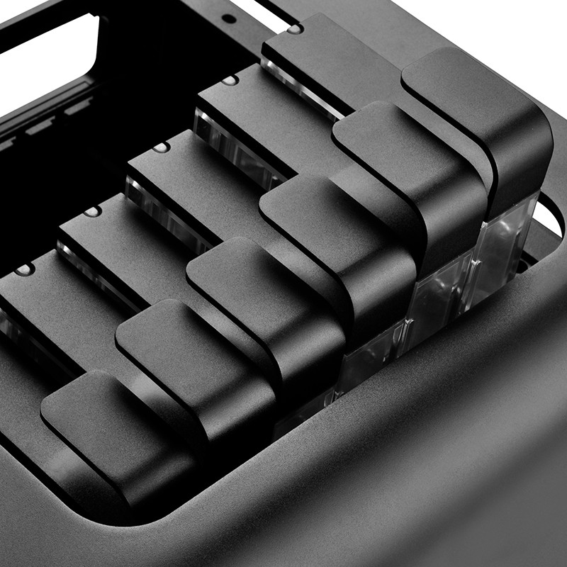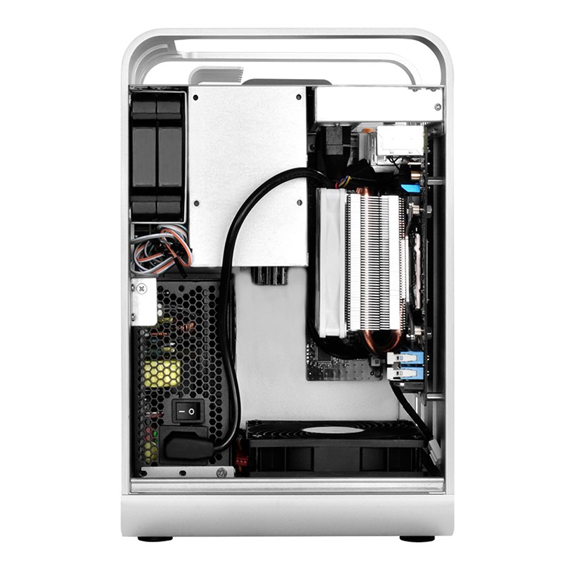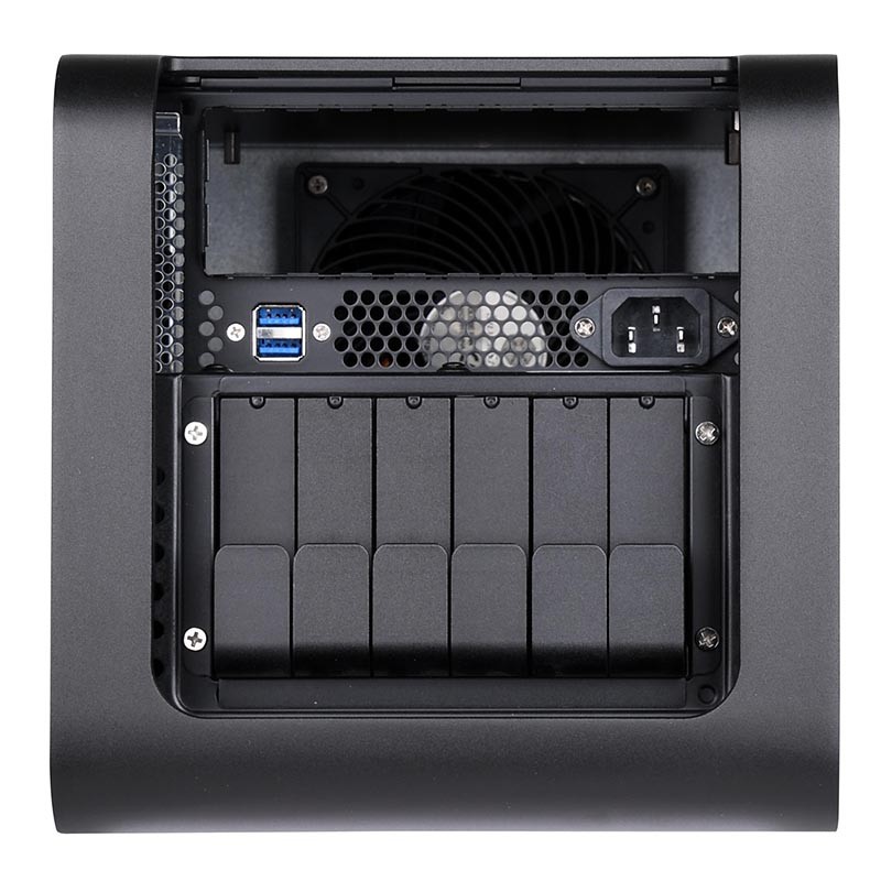 银欣CS01-HS机箱为NAS存储专用,上方提供6个2.5英寸SAS/SATA硬盘位,内部还能安装2块2.5英寸固态硬盘,支持热插拔,下方标配一颗12公分穿甲弹风扇,铝合金外壳,5mm厚度,0.8mm铁制机身,顶部带提把,方便移动,支持安装68mm高CPU散热器,支持SFX/SFX-L电源,支持mini-ITX主板,支持190*74mm尺寸显卡,机箱尺寸为10.5 x 322 x 210mm,约重4.29kg。
