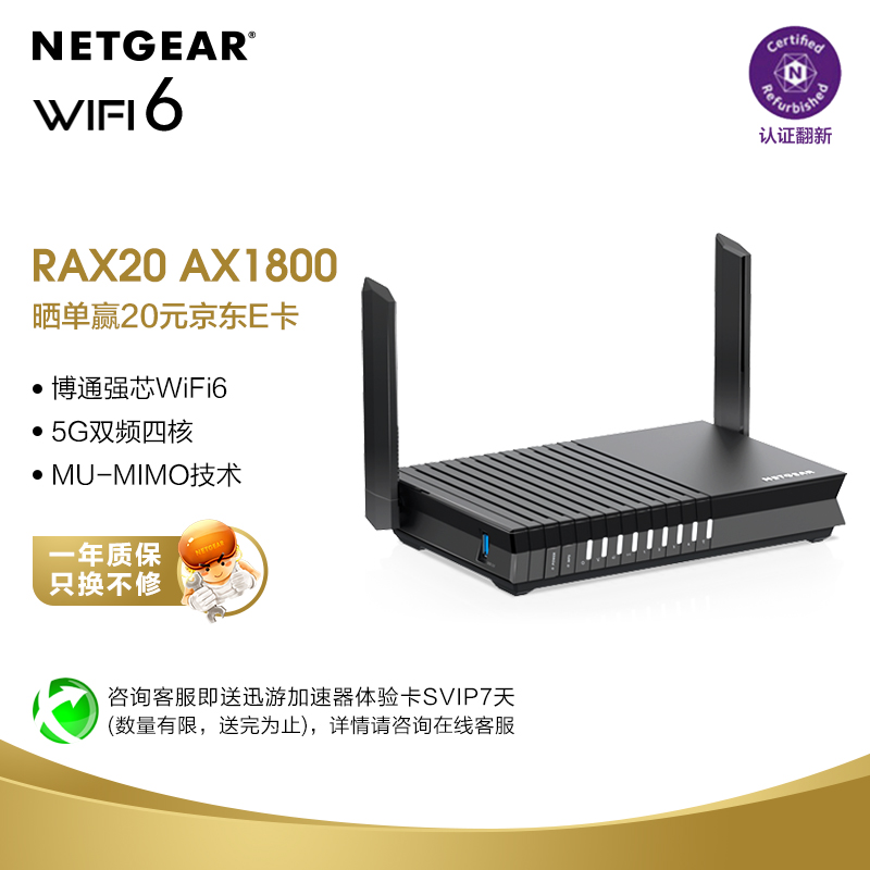 网件RAX20 作为网件Wi-Fi 6中的丐版产品,对标华硕AX56U,虽然速率只有1800Mbps,但配置比一些国产5400Mbps路由器配置还要豪华。