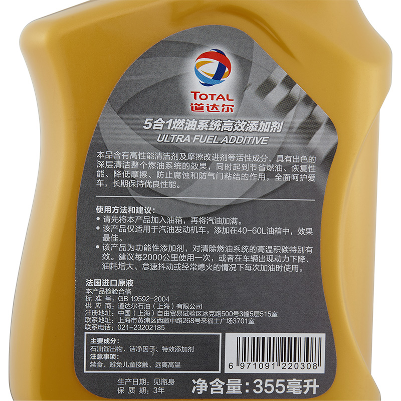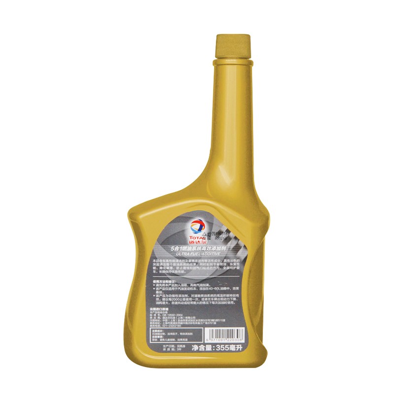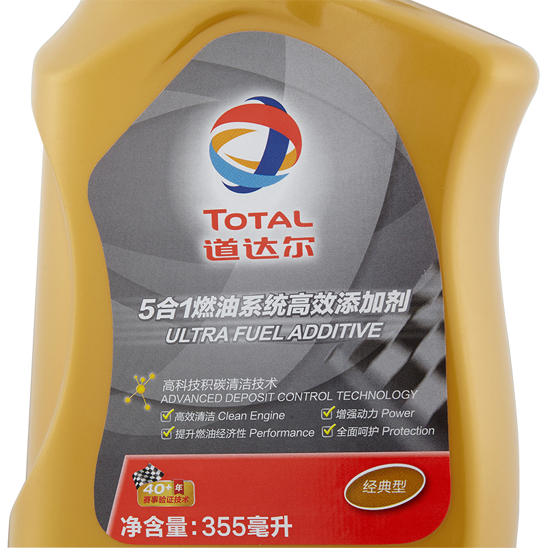 道达尔5合1燃油系统高效添加剂五大产品特点:1.富含3倍高效积碳清洁因子;2.防止腐蚀;3.深层清洁;4。保护发动机;5.摩擦改进剂。六大核心功效:1.清除积碳,富含三倍高效积碳清洁因子,能更有效清除气缸、气门、喷油器等部件表面的积碳;2节省燃油,减少积碳,降低油耗;3。保护引擎,高浓度摩擦改进剂的加入能有效防止发动机出现冷启困难、怠速抖动等问题;4.强劲动力,使燃油燃烧更充分,发动机更洁净,提升发动机功效,动力更澎湃;5.抑制腐蚀,防止燃油系统管路及零部件的腐蚀,延长发动机的使用寿命;6.改善排放,提高燃烧效率,减少有害尾气排放。