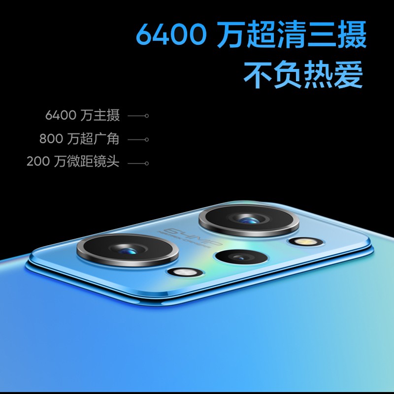 影像方面,真我 GT Neo2 搭载 6400 万超清三摄(6400 万主摄 + 800 万超广角 + 200 万微距),支持独家街头摄影模式,DIS 超清抓拍,多种街拍滤镜,超级夜景,专业夜景,星空模式。
