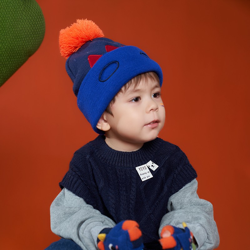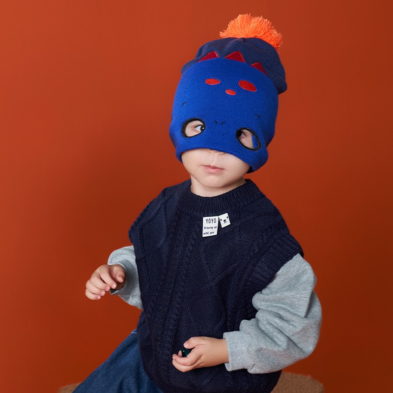 kocotree kk树 儿童保暖毛线帽,有效防静电,柔软舒适,立体卡通刺绣,潮酷休闲,帽顶设有可爱的大绒球,增添萌趣,保暖+透气一帽搞定。帽檐翻折,头部保嗳拒绝繁琐,帽檐放下当面罩,变身潮酷宝贝。