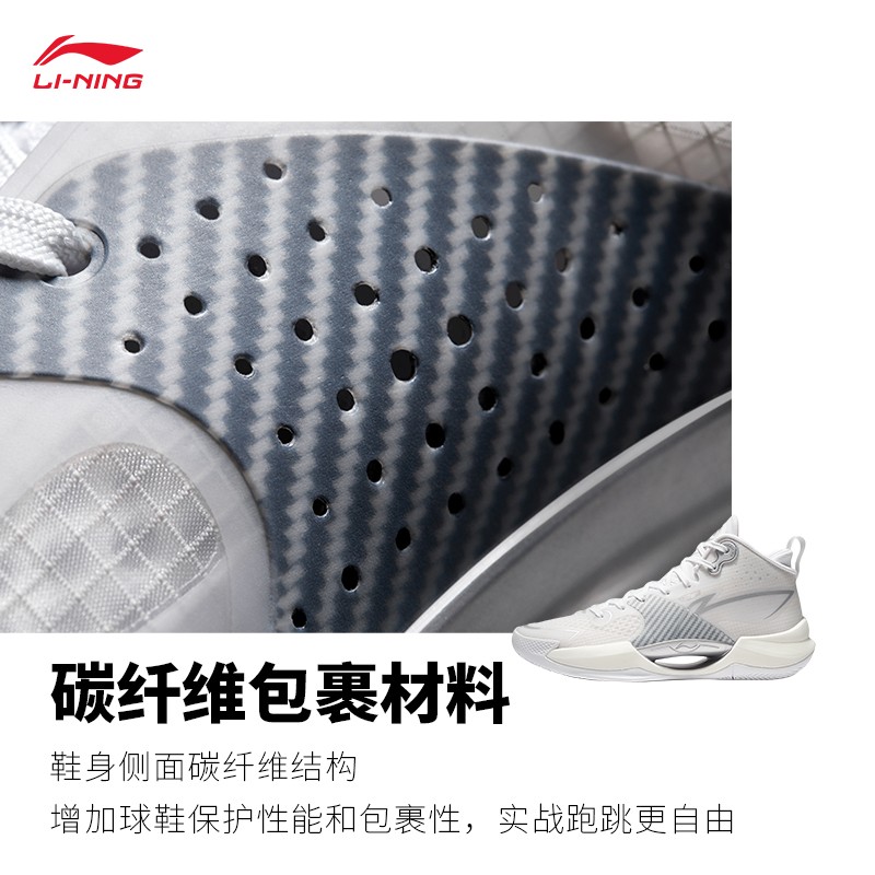 此款超轻男子实战篮球鞋三大科技强势助攻,前掌䨻科技+全掌LIGHT FOAM,高回弹性能加持,重量大幅减轻,实战反应更加迅速灵敏。足弓搭载P0BAHL0C,中底采用尼龙十二支撑片,重量大幅减轻,上脚更轻盈,提高更好稳定性的同时支撑赋能,提升运动表现。鞋身侧面碳纤维结构,增加球鞋保护性能和包裹性。