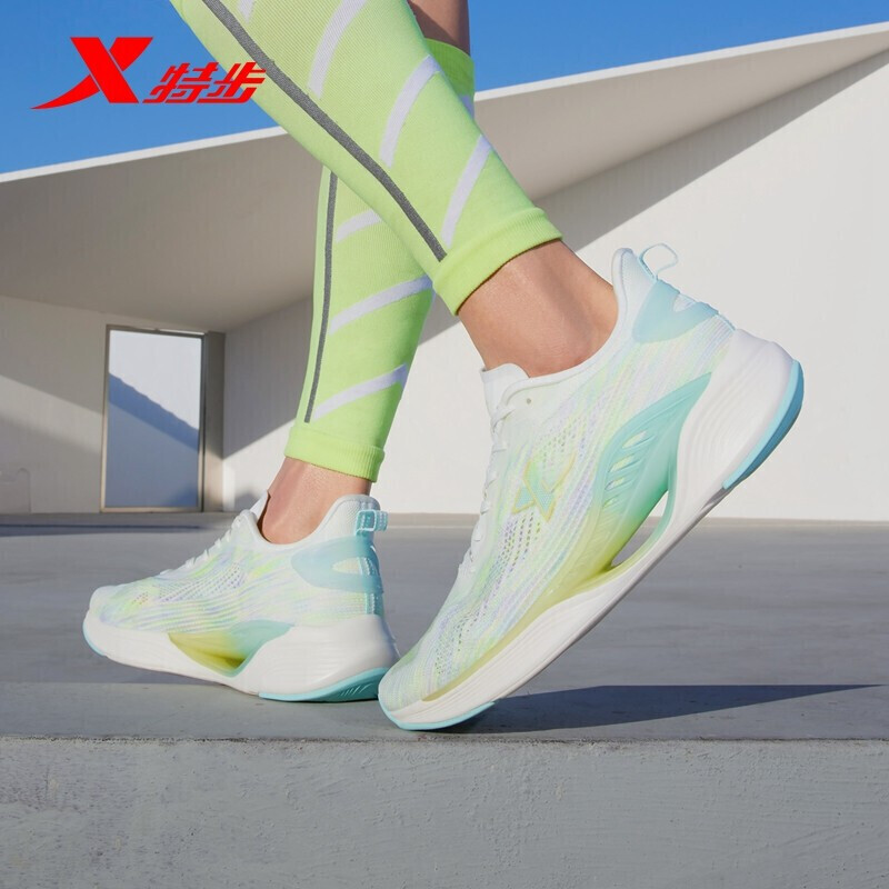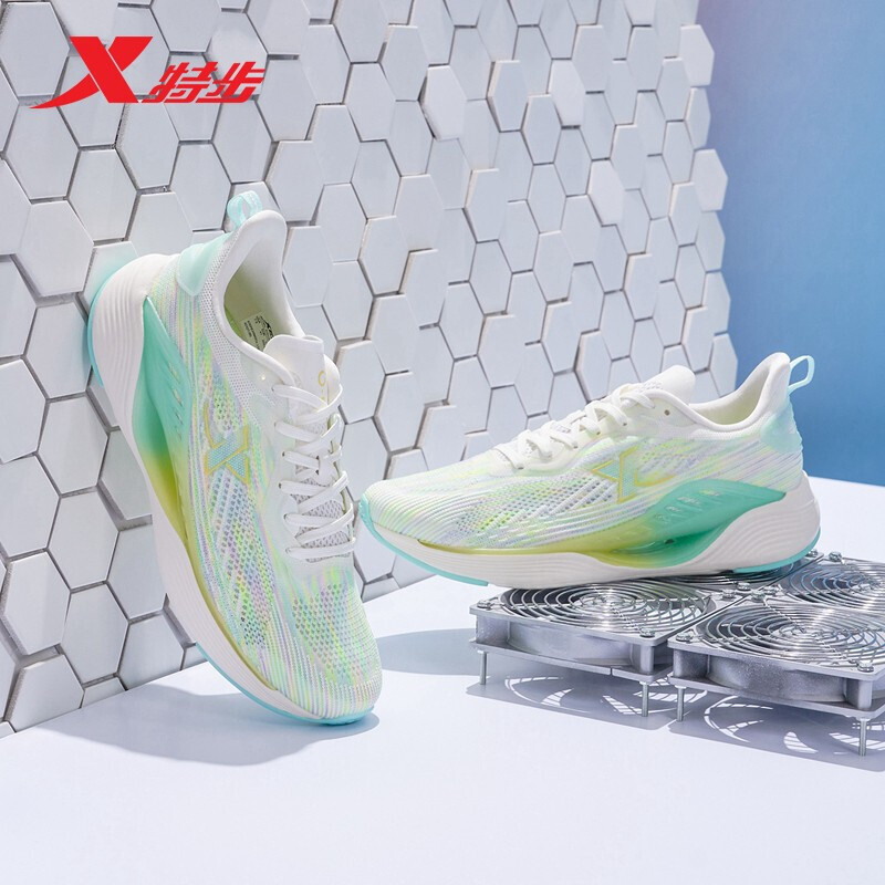 特步 氢风科技5.0 跑鞋 ,氢风科技创新镂空中足通道,快速排出热量,时刻保持鞋腔内干爽,让鞋底犹如搭载“中央空调”般通透自如。一体织面料打造,有效支撑包裹,镂空加大网眼设计,提升透气性。中底搭载騛羽科技,鞋身更轻,减震更佳,BOOOM发澎湃动力脚感。