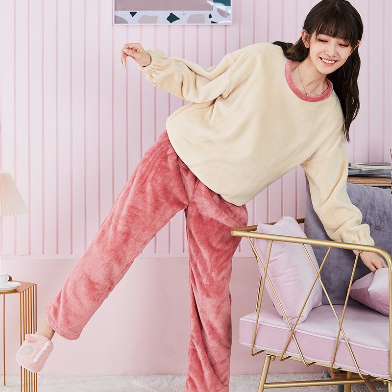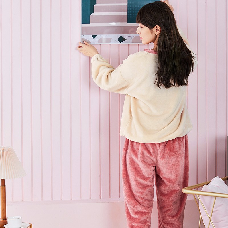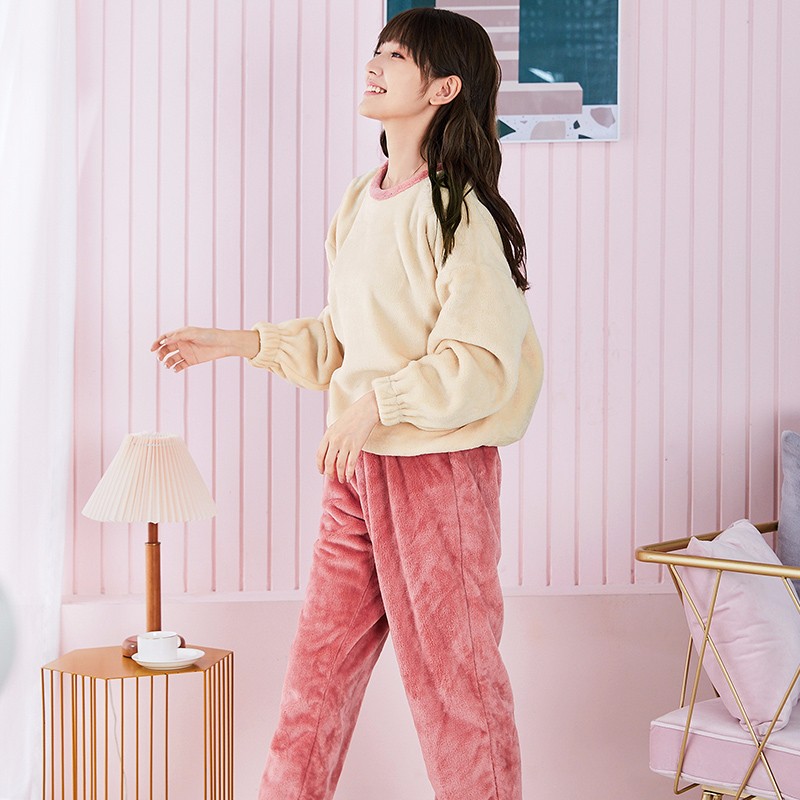 当前的位置: 首页 > 今日值得买 > 都市丽人睡衣女清新时尚撞色法兰绒厚款加绒圆领女士家居服睡衣套装2H0224 米色 L