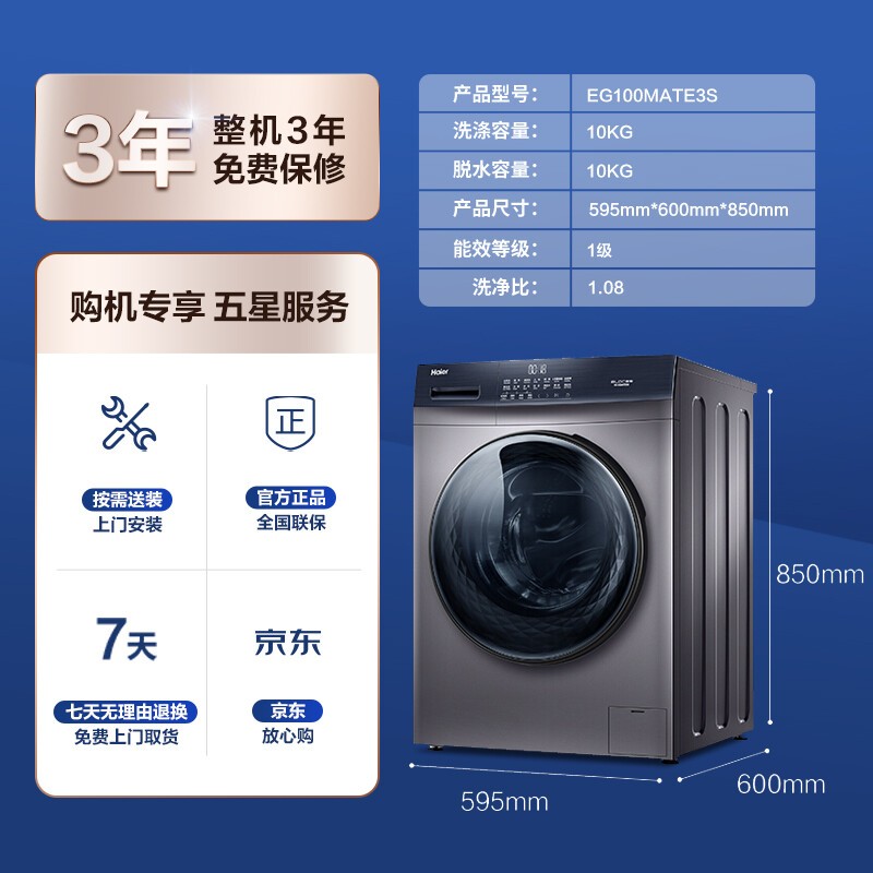 证书编号:2017010705017445证书状态:有效产品名称:滚筒全自动洗衣机3C规格型号:见附件产品名称:Haier/海尔 EG100MATE3S洗衣机品牌: Haier/海尔海尔洗衣机型号: EG100MATE3S使用方式: 全自动洗衣程序: ,单脱水 筒自洁 羽绒洗能效等级: 一级产品类型: 滚筒洗衣机电机类型: BLDC变频电机