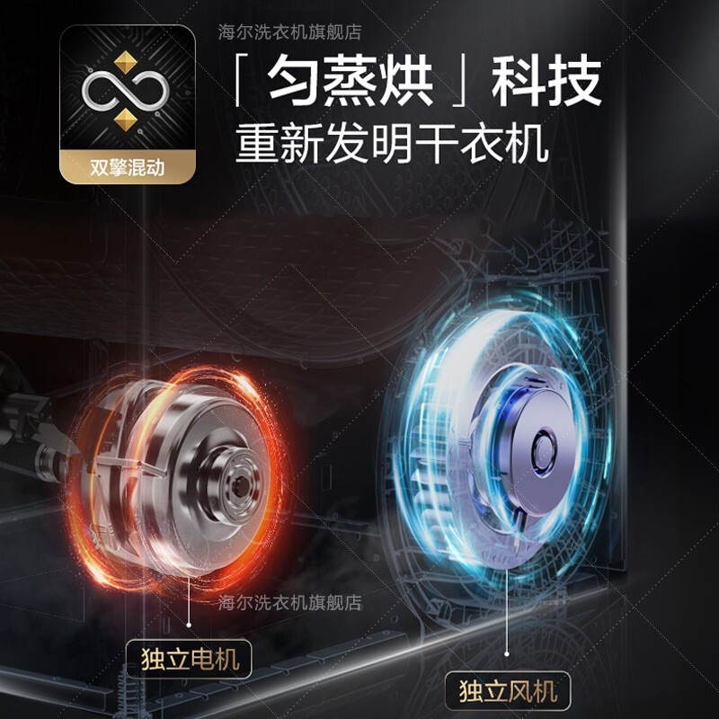 海尔这款型号为HBNS100-FQ176U1的热泵烘干机属于纤美系列,拥有10kg容量,通过独立电机控制内筒,实现1:1正反转,减少衣物缠绕让烘干更彻底;另外还有独立风机控制风扇,实现无极变速送风;搭载Hybrid混动速热技术,升温更快,节省烘干时间;带有微蒸汽空气洗功能,通过超声波雾化技术带走异味、灰尘;配备四重线屑过滤,可高效滤除宠物毛发、皮屑、浮尘、毛絮等附着物;门窗左右可调,产品尺寸为600*595*850mm(深*宽*高)。