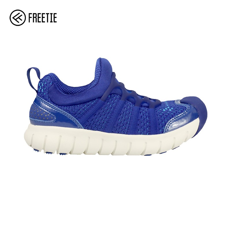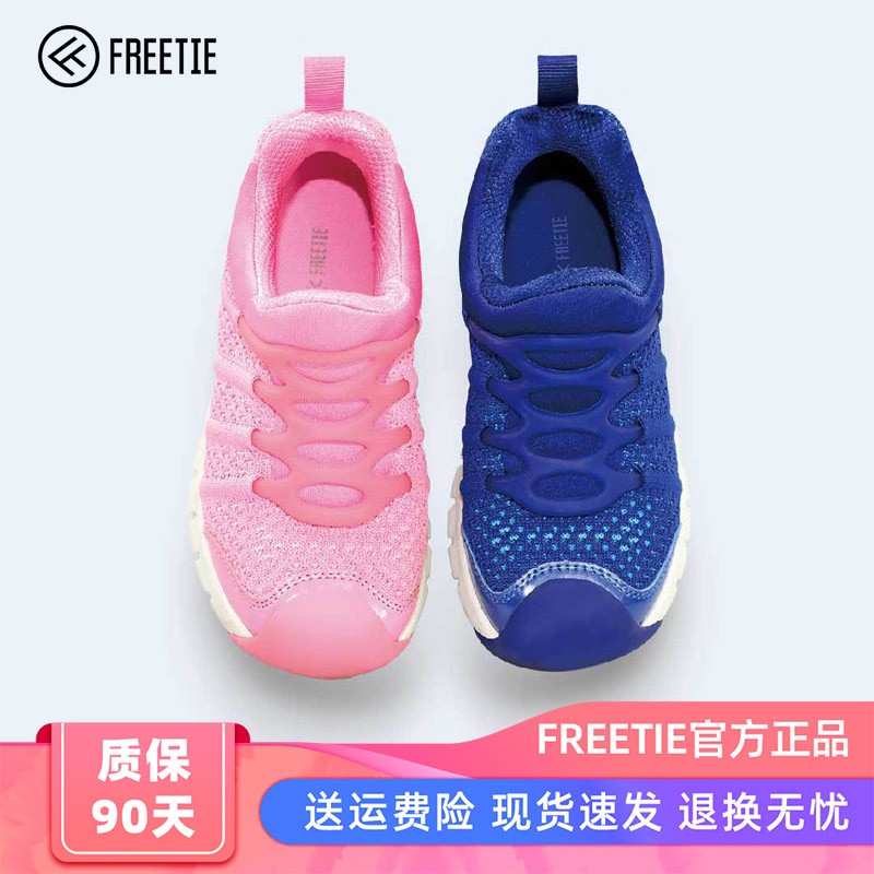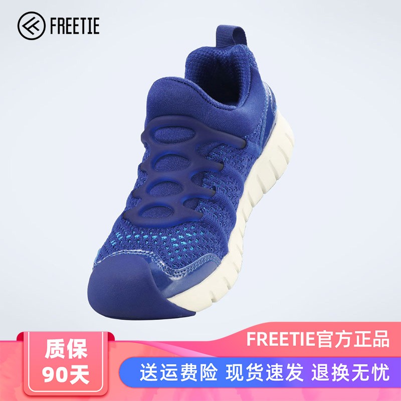 FREETIE 儿童运动鞋,专注做鞋,圆球形空间设计,不会夹脚,运动鞋鞋头前端的的三分之一处微微弯曲的弧度设计,目的是让小朋友形成正确的走姿,防止内八字、外八字及其他不正确的走姿。材质是一体式针织鞋面,具有良好的排热透气性。侧面看去像一根根鱼骨头一样,其实是弹力鱼骨锁进系统设计。这样设计可以给柔软的鞋面带来极大的支撑,鞋底采用高弹EVA模压中低,舒适有弹性。