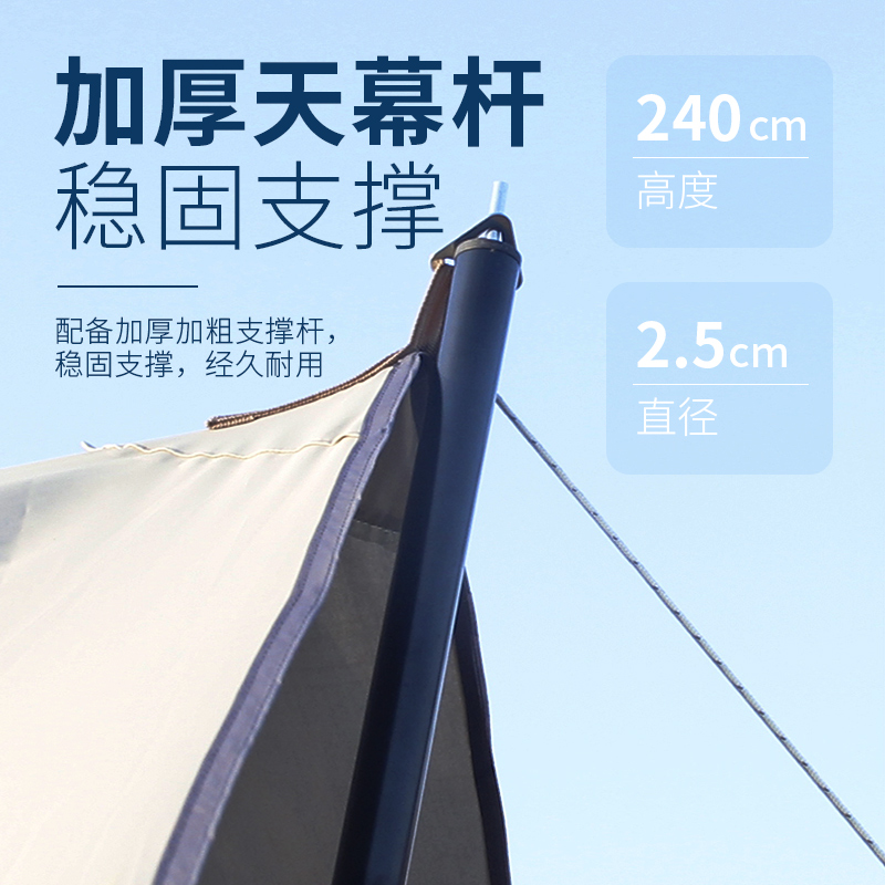 MOTIE 魔铁 户外四角涂银天幕 MTM210D,150D加密牛津布,超大投影面积,内里涂银,遮阳防晒,2.5cm加粗支撑杆,牢固耐用,不易变形,展开尺寸为500*340cm。