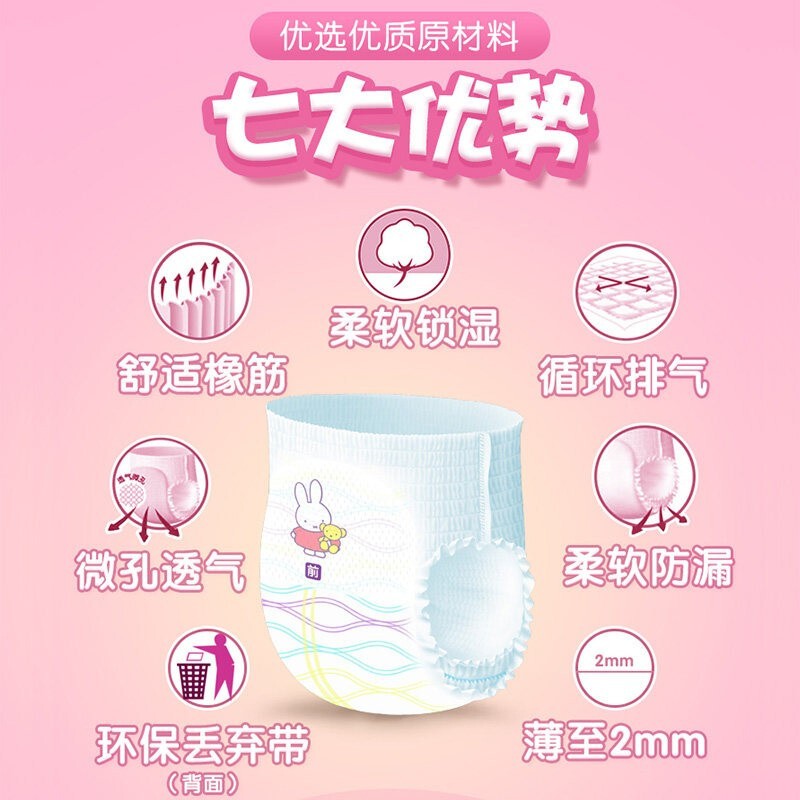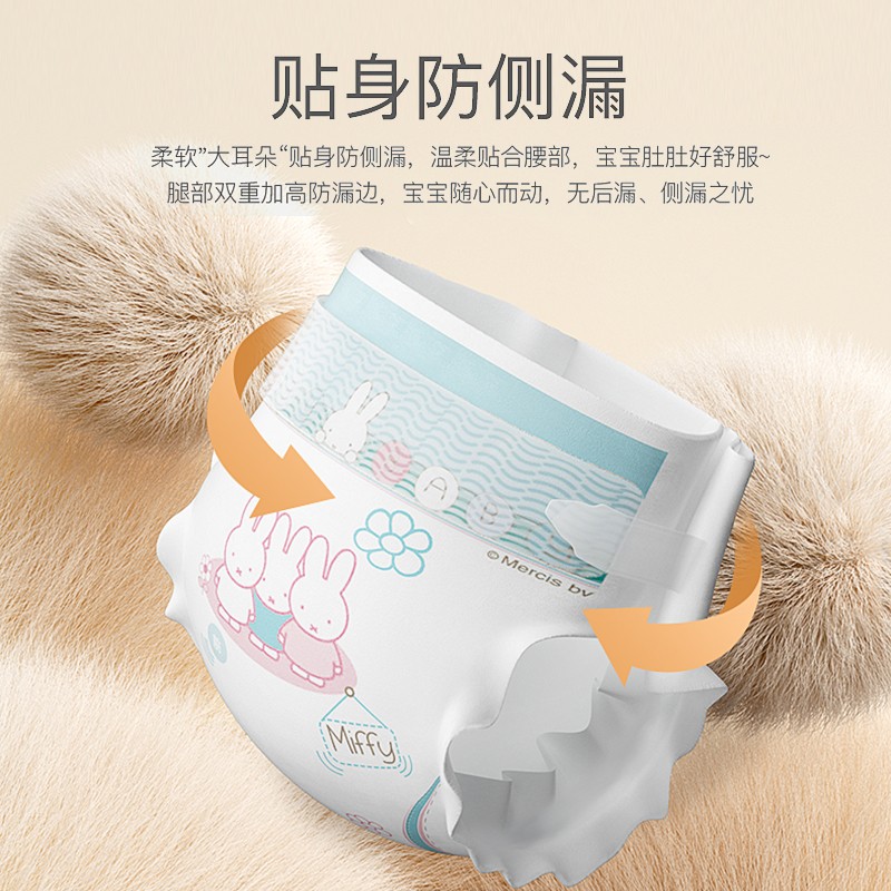 SOLOVE品牌由荷兰国宝级IP米菲代言,隶属于杭州千芝雅集团,是致力于卫生护理用品研发、生产、销售、运营于一体的国家高新技术企业,旗下有芯呼吸系列、云吸畅爽系列、多彩梦系列等系列纸尿裤。本款芯呼吸系列纸尿裤采用3D立体压纹表层,立体循环透气,选用优质进口高分子芯体,吸水量达800ml,一次尿液80ml水量2秒瞬吸,吸收更迅捷。整体设计薄约2mm,轻约28g,给宝宝更多轻薄舒适体验,柔软却无勒痕的弹力腰围,在腰部棉柔褶皱处形成透气凹槽,随时排出闷热湿气,4cm超高弹力护围加持,安全防漏,让宝宝日常活动更自如。