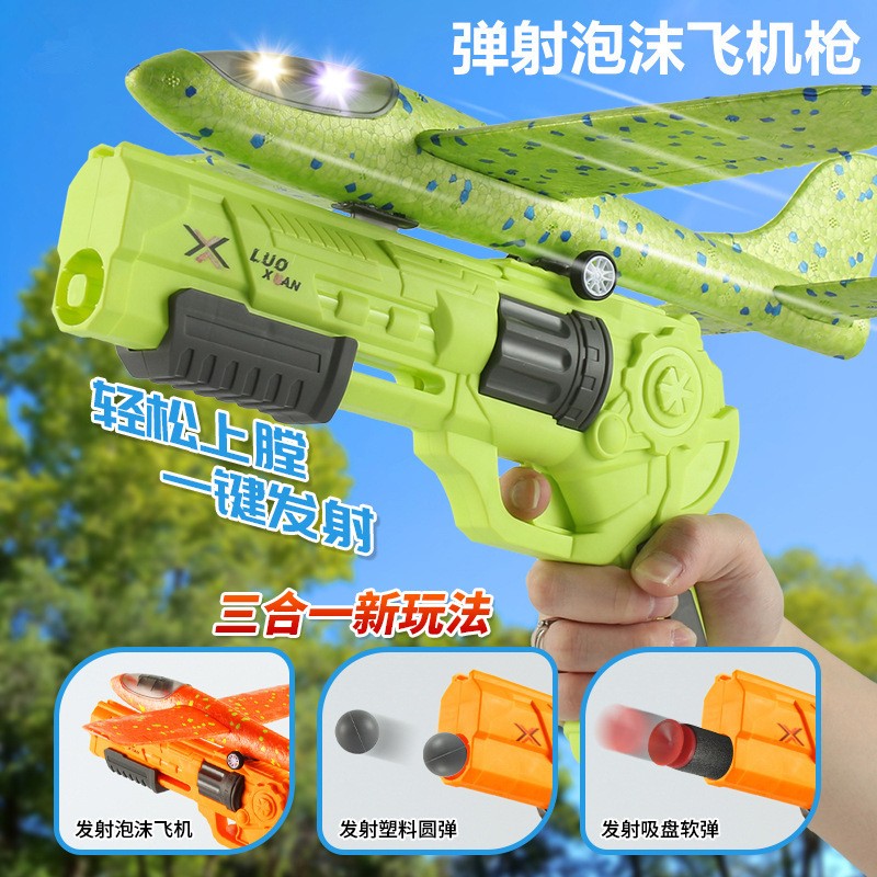 可发射泡沫飞机,安全材质,需电能,转动上链弹射出击,节能环保。不易变形,耐摔耐玩。款式多样,随意挑选。科技造型,流线外观。采用ABS新型材质,实验测试耐玩。内芯强大,射程更远。