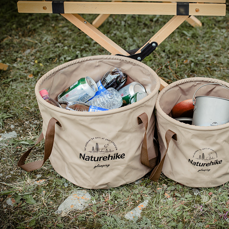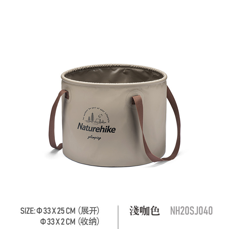 Naturehike 挪客户外 NH20SJ040 户外可折叠水桶,采用PVC网布材质,两侧加固提手。底部防水,折叠收纳,存取方便,大地配色,居家旅行的好帮手。大小尺寸可选,两侧加固提手,底部压胶防水。