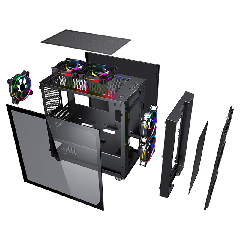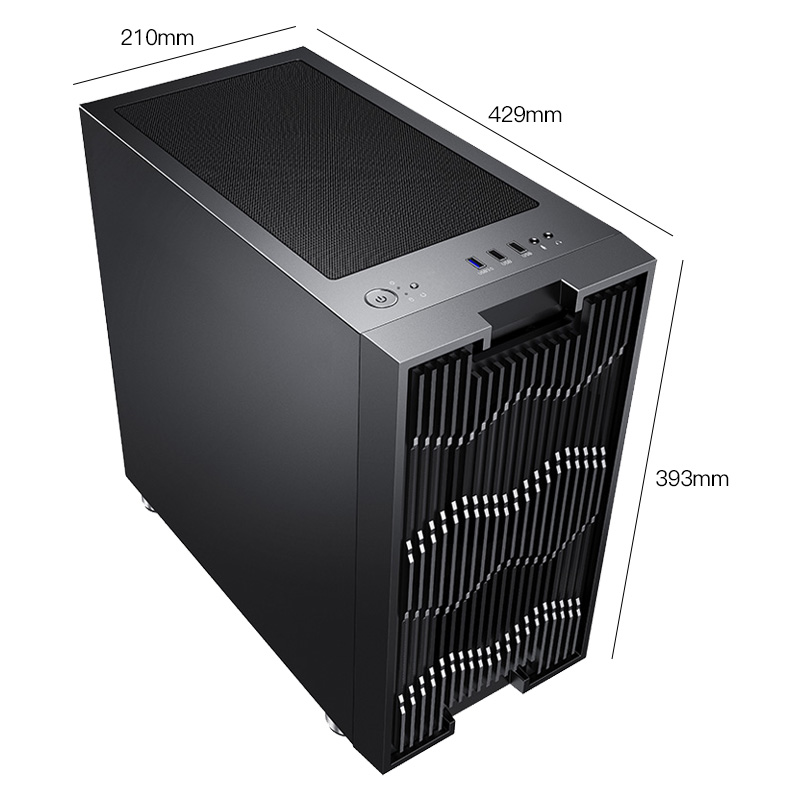 先马 平头哥M7 Mini小涡轮机箱整体尺寸为429x210x393mm,材质方面采用SPCC钢板+钢化玻璃,板材厚度0.7mm,支持背线。前置接口拥有耳机麦克风,2个USB2.0,1个USB3.0,电源开关及重启按键。兼容性方面,最大支持M-ATX主板,CPU散热器限高163mm,显卡限长375mm,电源限长210mm。散热方面,机箱前面板支持两把120mm风扇和240冷排,机箱背部支持120mm风扇和120冷排,机箱顶部支持两把120mm风扇。扩展性方面,拥有2个3.5英寸和2个2.5英寸硬盘位。质保三个月。