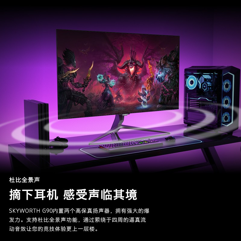 在设计方面,创维G90拥有99%的屏占比,后壳采用钢铁之盾+战斗之翼的设计思路。包装盒内不仅标配了可以手动进行升降的Y型底座,而且还有满足显示器挂墙需求的VESA壁挂转接件。该显示器还支持杜比全景声、杜比视界、两个HDMI 2.1和Wi-Fi 6无线网络,并且还内置了独立的Soc和用于创维电视的酷开8系统。这意味着创维G90除显示器用途之外,还可以当做一台功能完整的智能电视来使用。