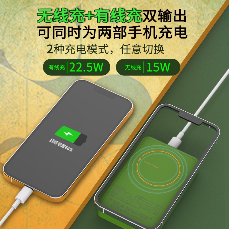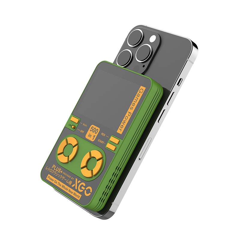芯果MagSafe磁吸无线充移动电源,正面配备了一款2.4寸的TFT彩色显示屏,其最大的优势是可以边充电边玩游戏。内置500款游戏。充电宝支持苹果MagSafe磁吸。拥有最大22.5W有线充电和15W无线充电。移动电源两侧拥有散热孔,低温不触发热敏电阻。尺寸为65*103.5*16mm。