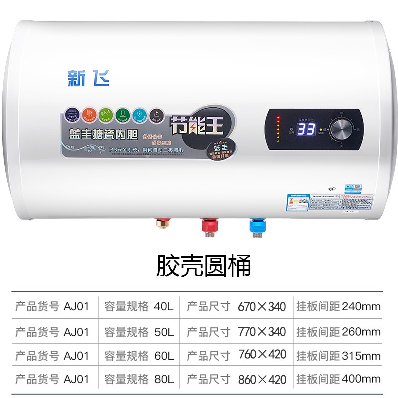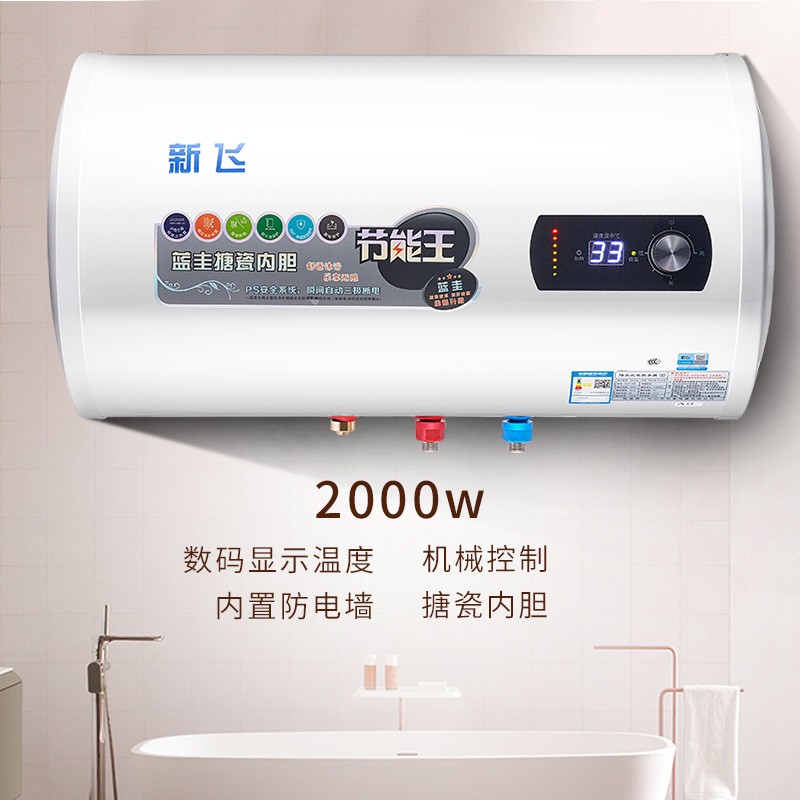 这款Frestec 新飞 DSZF-B系列 储水式电热水器,容量有40L、50L、60L、80L四种规格。2000W增容速热设计,内置不锈钢发热管,加热快速,使用热水无需过久等待;内置蓝圭搪瓷内胆,防腐抗垢耐高温,使用寿命长久;智能超温断电保护、六重安防保护装置,使用安全可靠,时刻守护你的家人;大屏数显,内容清晰明了,机械旋钮控温使用方便,即便是家中有老人也能放心使用。