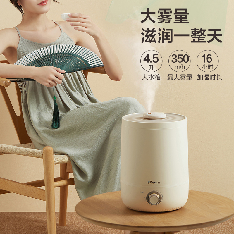 当前的位置: 首页 > 今日值得买 > 小熊(Bear)加湿器卧室办公室空气加湿器大容量室内婴儿伴侣家用大雾量桌面香薰机上加水4.5升JSQ-C45U1米黄色