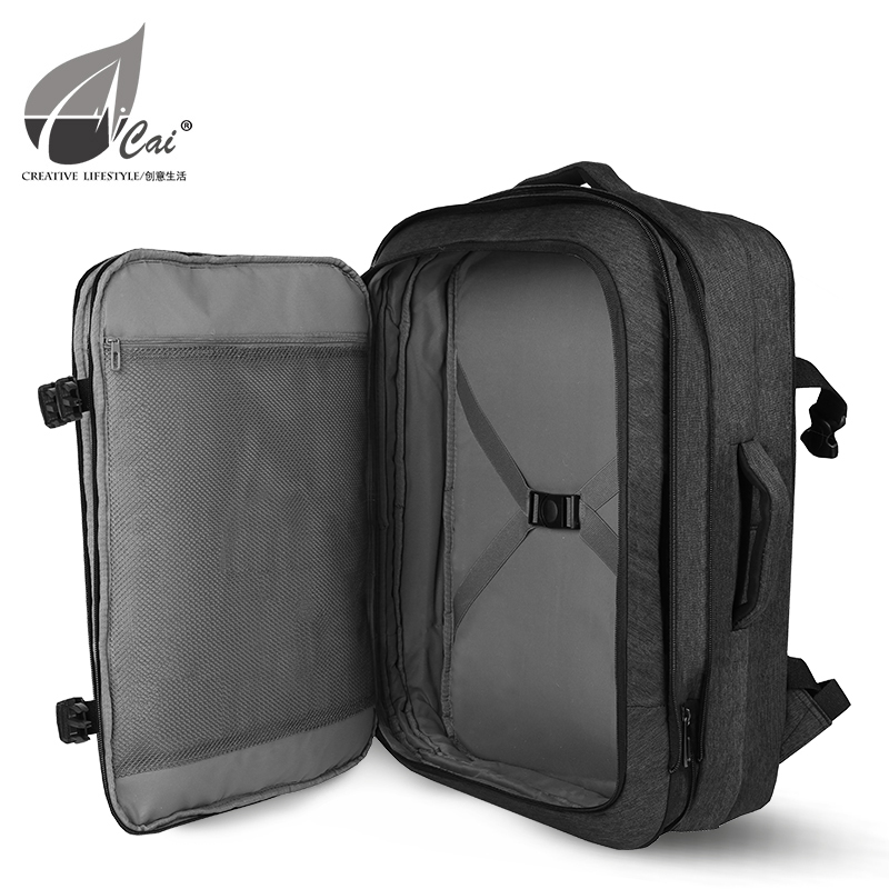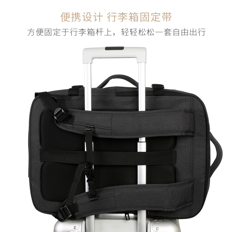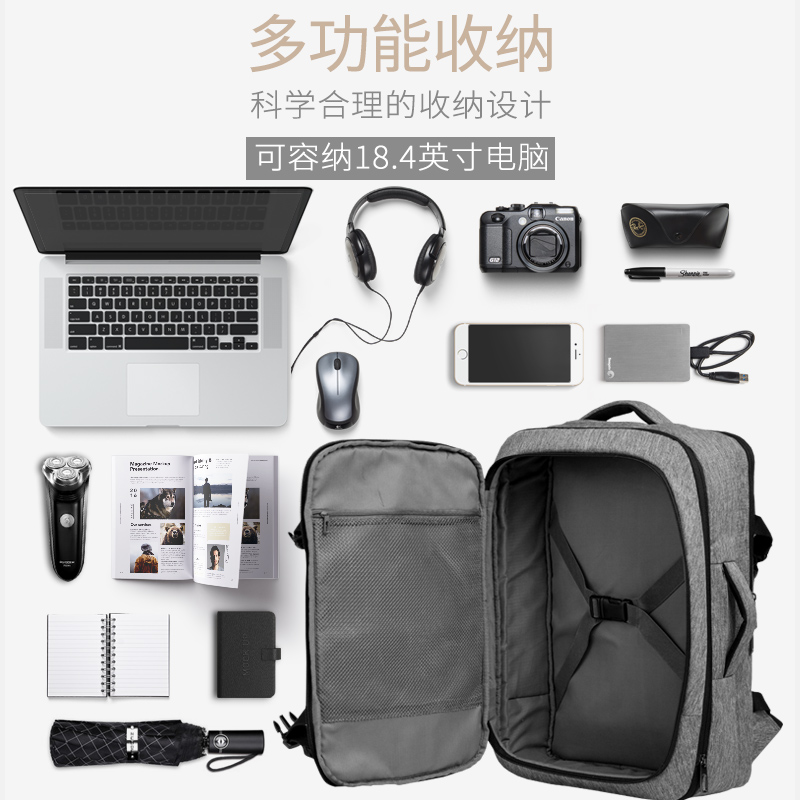 这款电脑包可通纳18.4英寸笔记本电脑,分区设计,收纳更方便,拥有后背肩带防脱落锁扣,拉开拉链扩展层,收纳空间扩大15%。