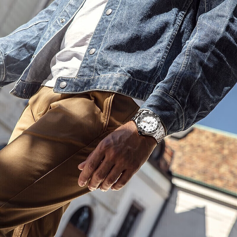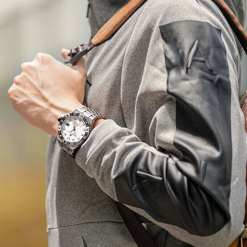 艾美推出的这款43毫米腕表,搭载机械机芯,走时稳定。具有30ATM防水性能,可满足日常防水需求。采用人工合成蓝宝石水晶玻璃表镜,耐磨损且通透性好,读时清晰。圆形表盘配以点状刻度、巴顿式指针,简约大气。配有精钢表带,佩戴舒适。