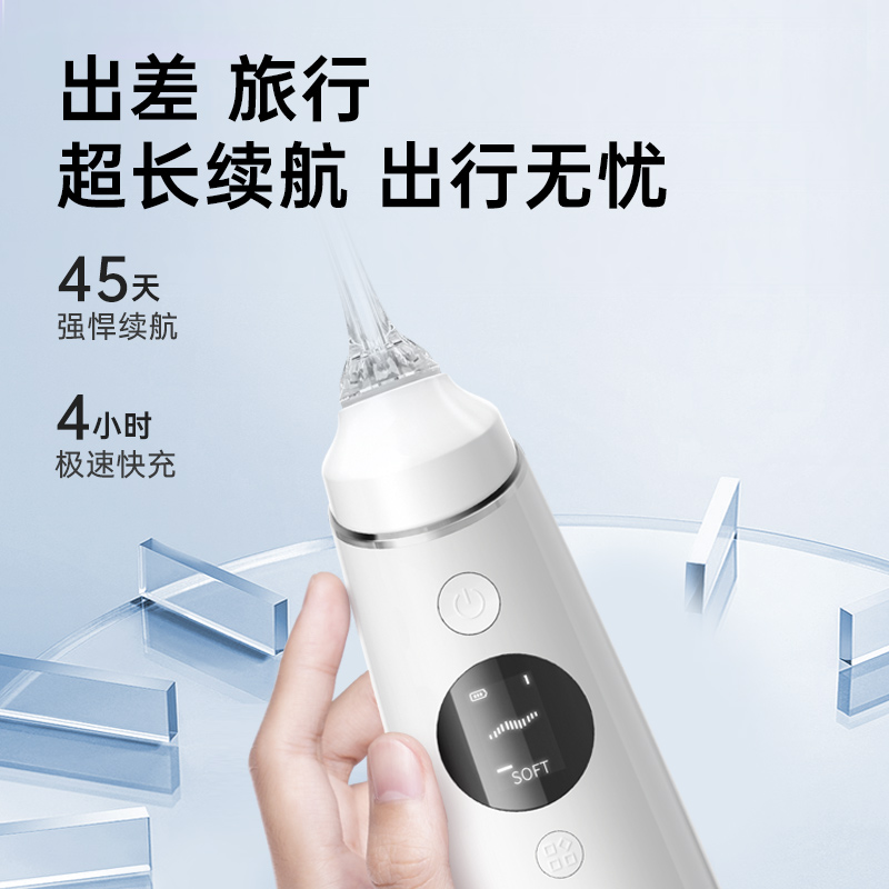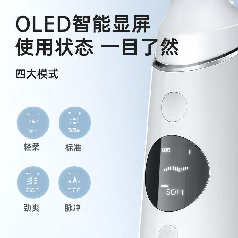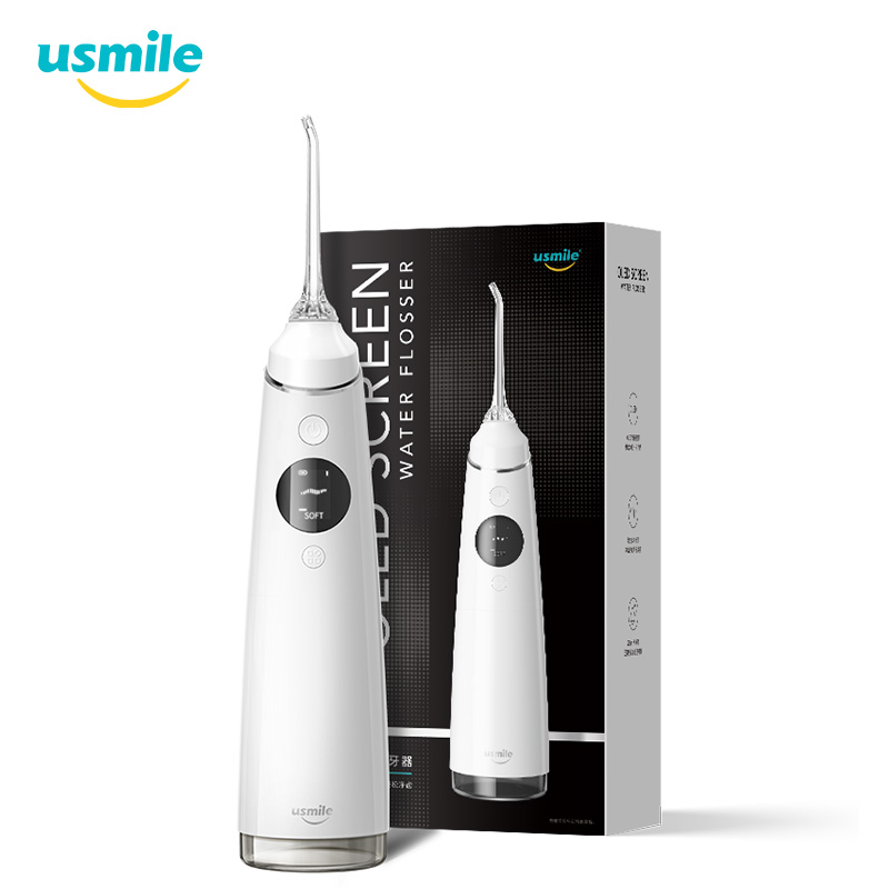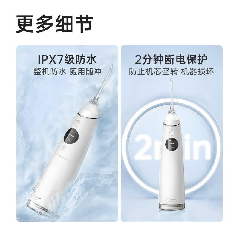 usmile O3 冲牙器 白色,OLED智能显屏,模式力度一目了然,电量/力度/模式/关机显示。4档模式设计,劲柔自在调节,先选模式再开机,智能防喷溅,出水细腻柔和,深澈洁净的同时,不伤牙不伤龈 口腔焕然一新,280ml大水箱,无需反复加水更畅快,IPX7级防水,无惧水下冲洗。